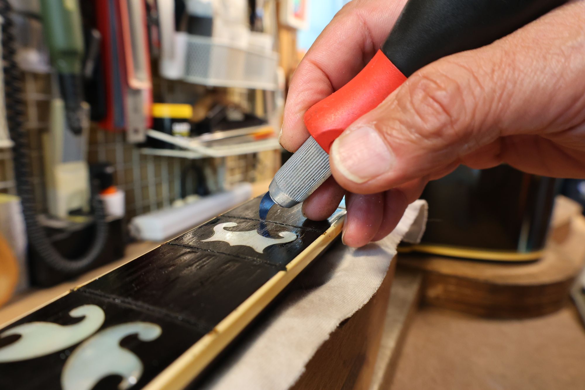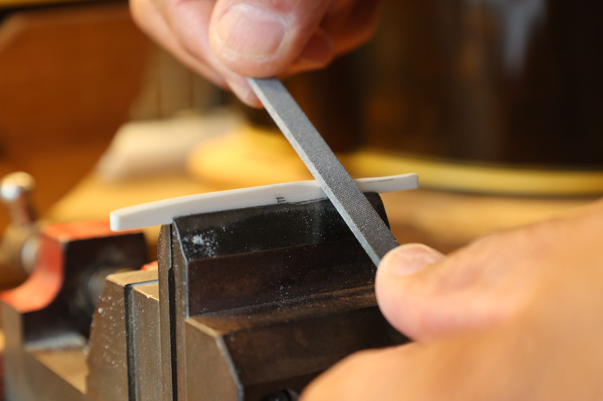 - 17.弦溝を専用のヤスリで彫り込んでいきます。