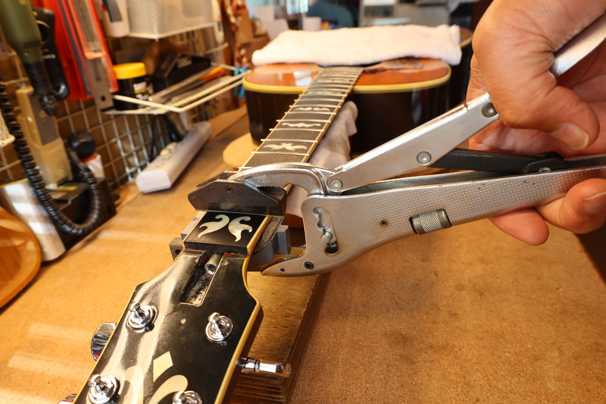 - フレットを抜いている様子です