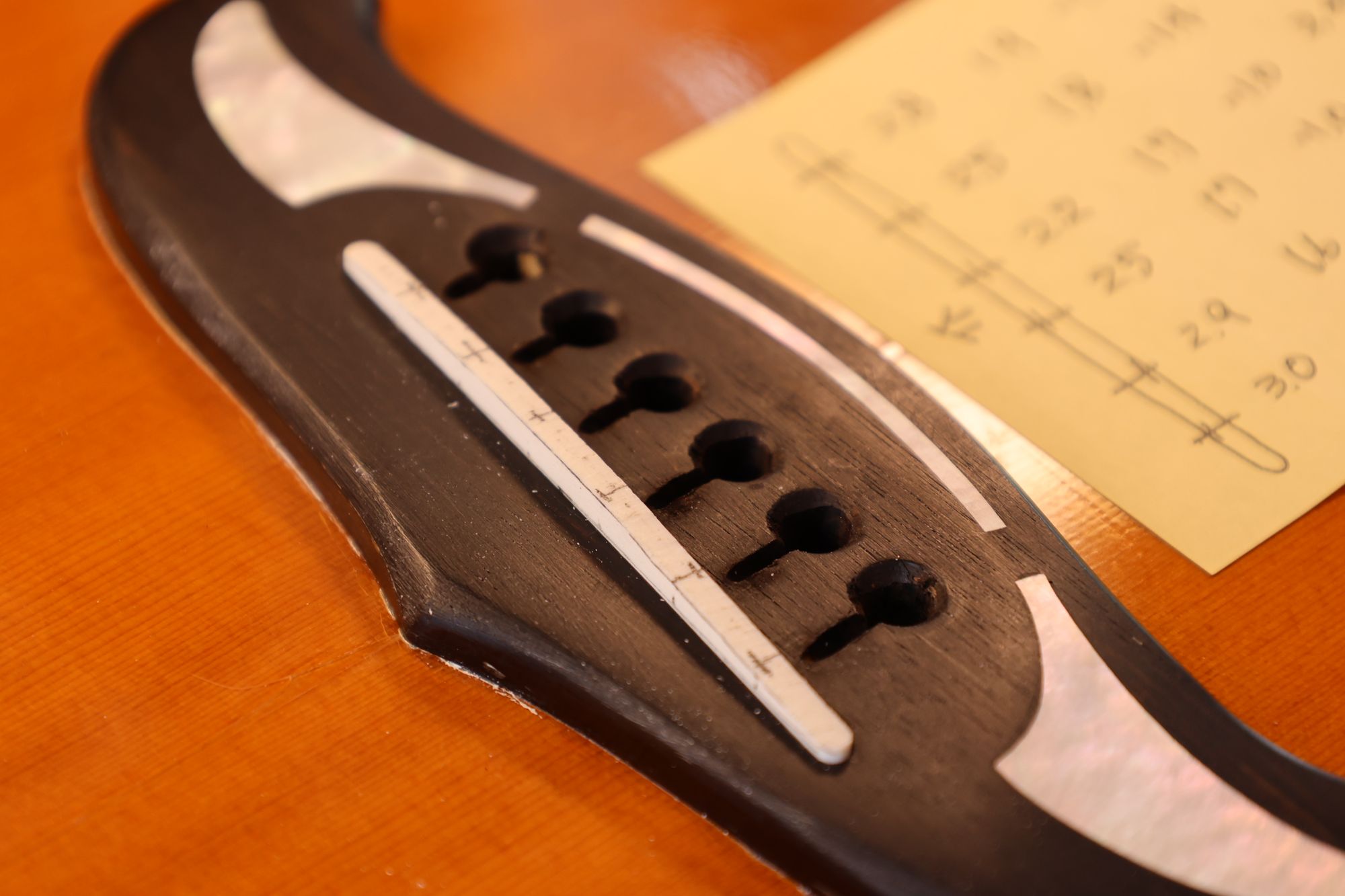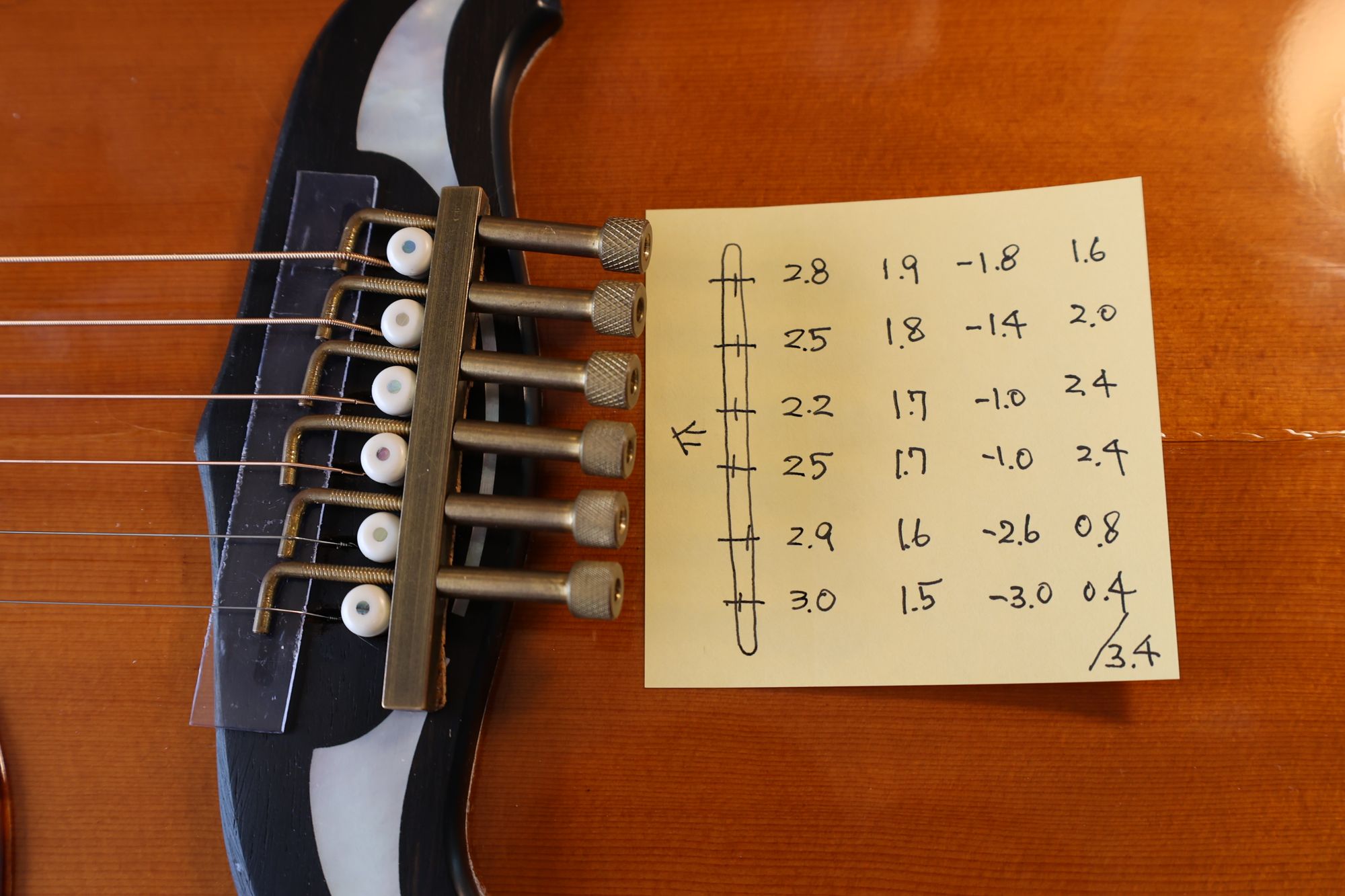- 15.目標の弦溝位置を読みとります。(1弦と6弦の位置で他の弦の位置が決まります)