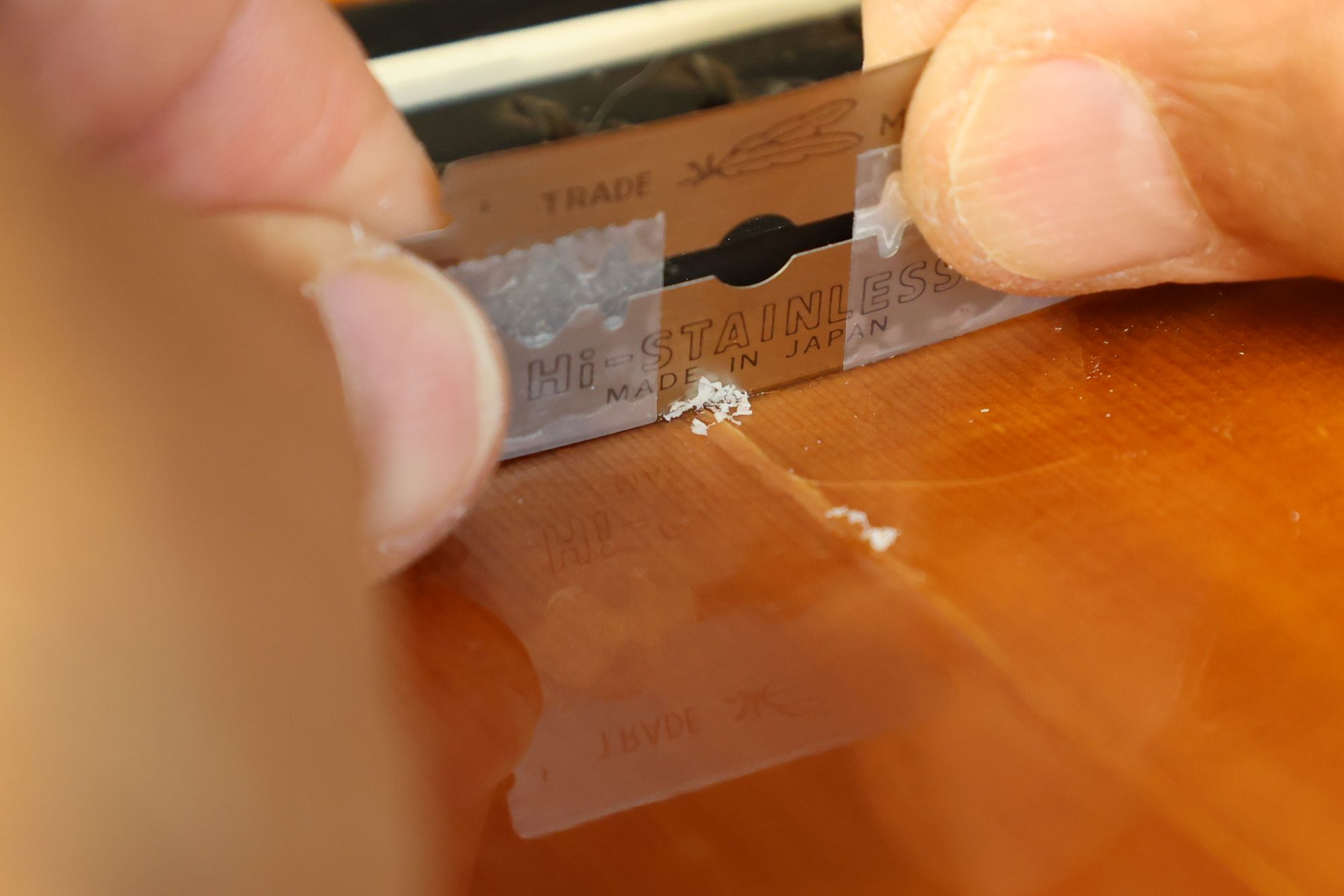 - 6.数日後固着したラッカーをスクレイパーで削り取ります。