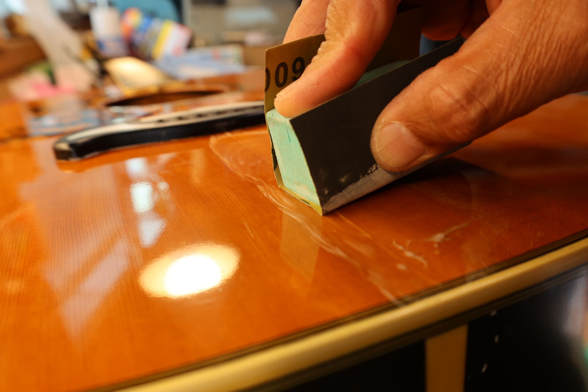 - 36.紙ヤスリ(#400)で粗研磨します。