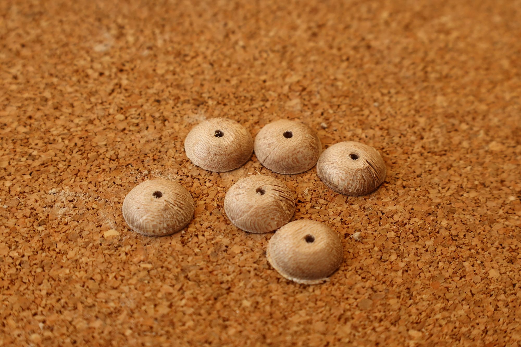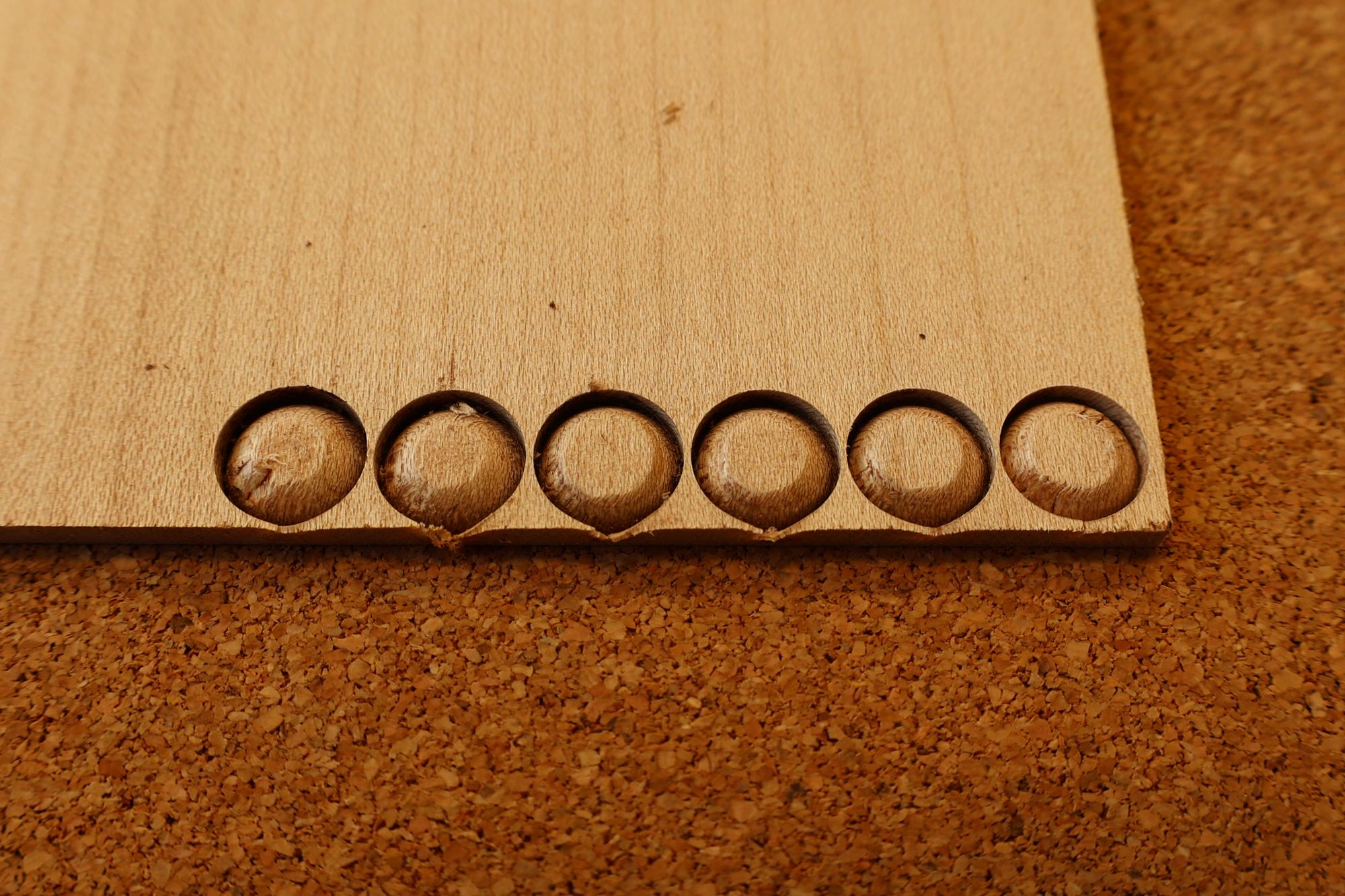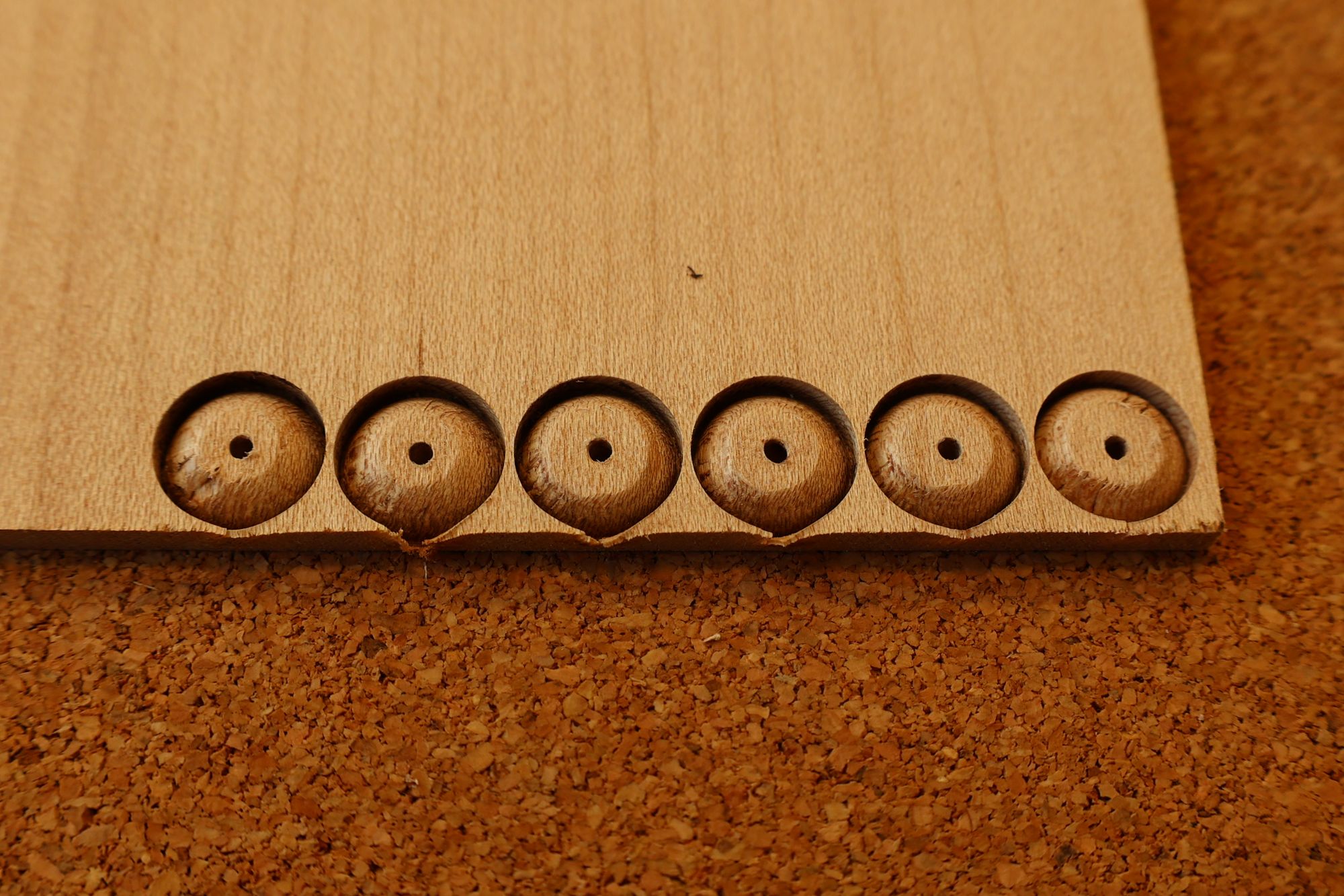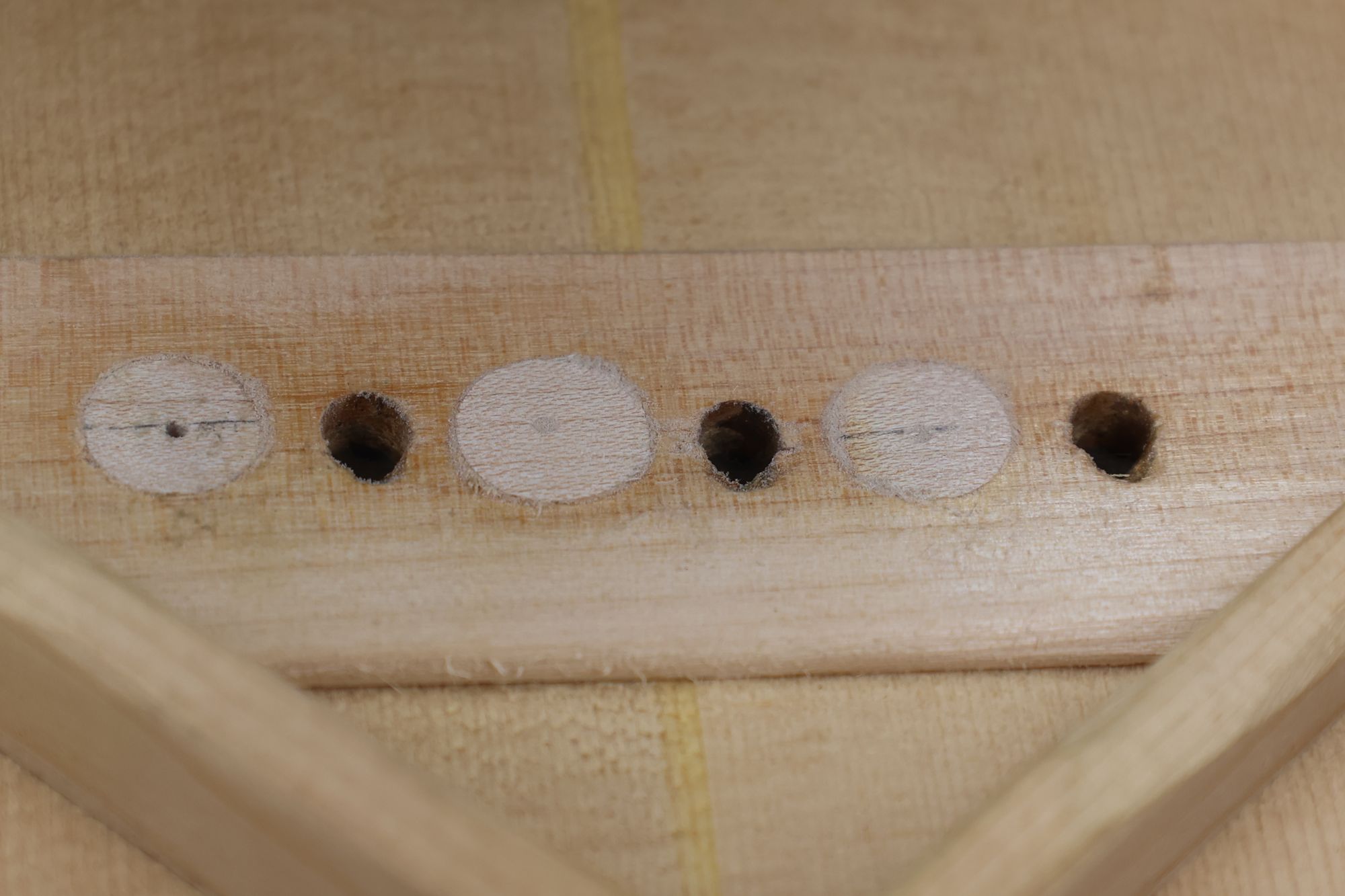 - 5.小穴があいたプラグです。まだ材に固定されています。