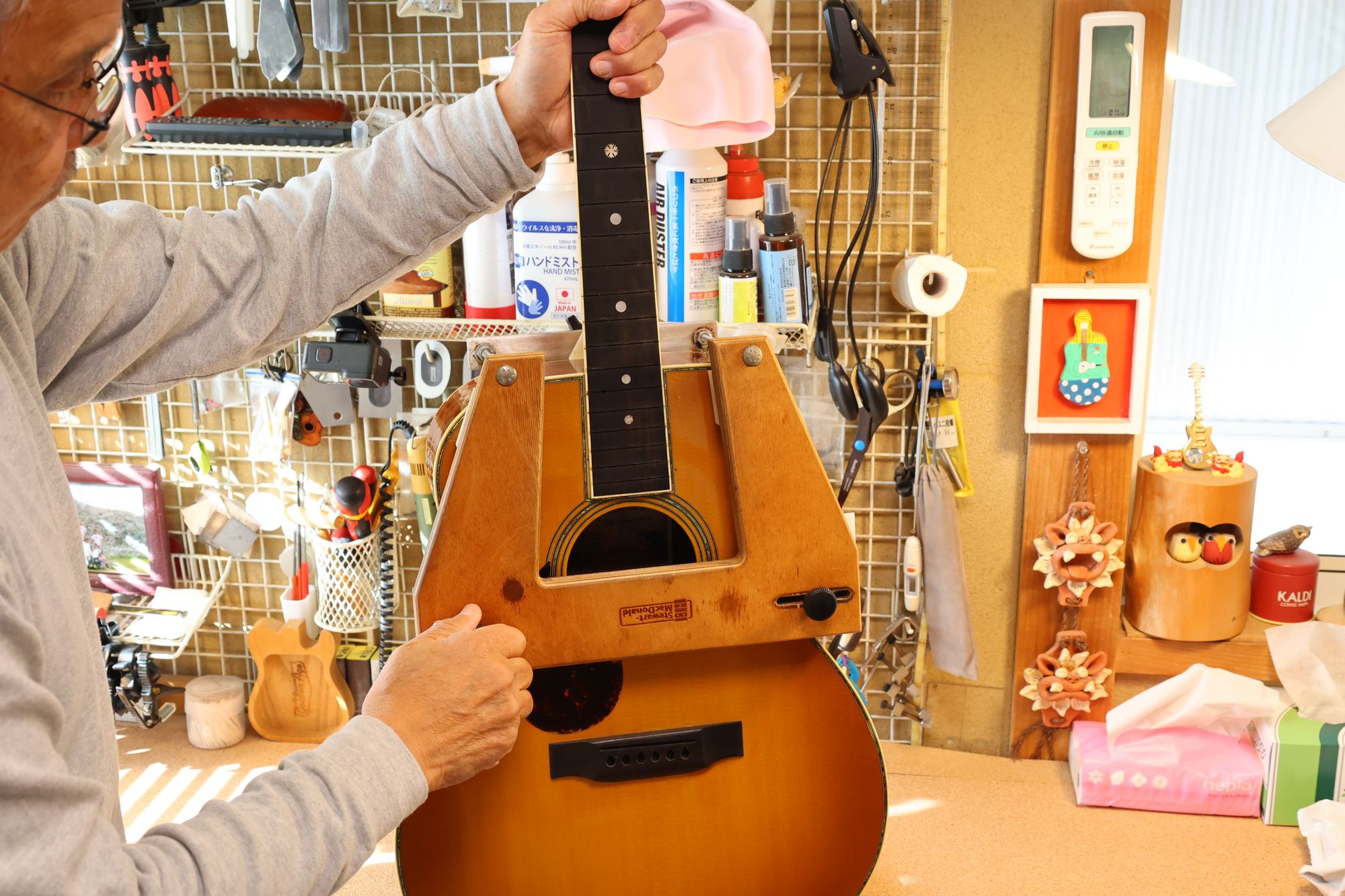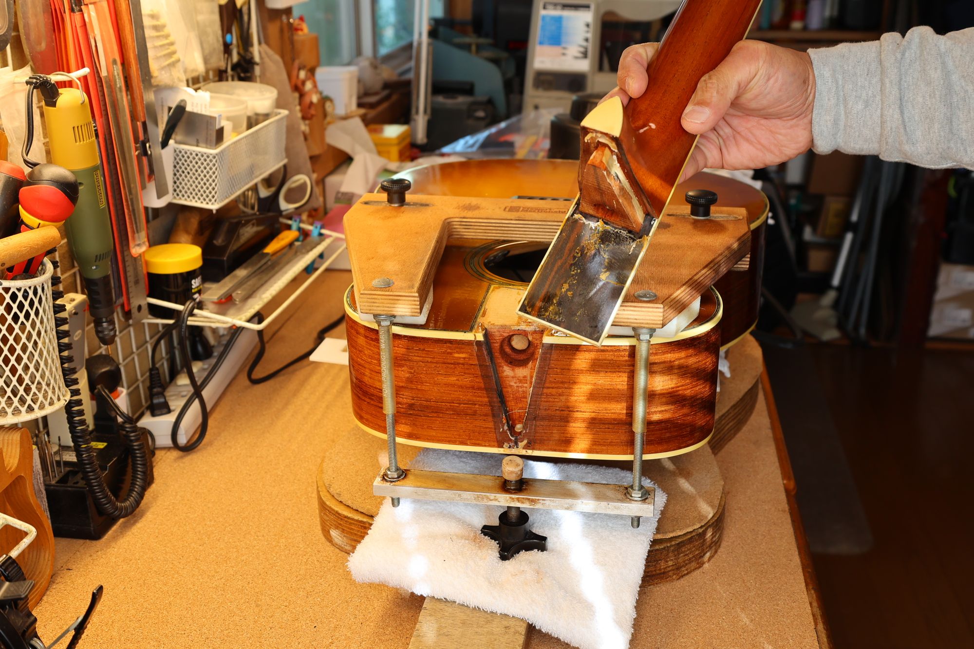 - 別角度から見たネック取り外しの様子です。