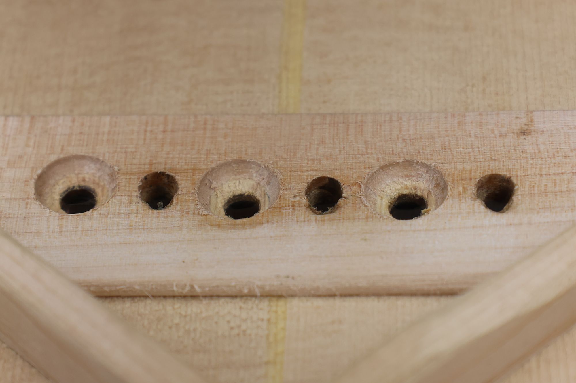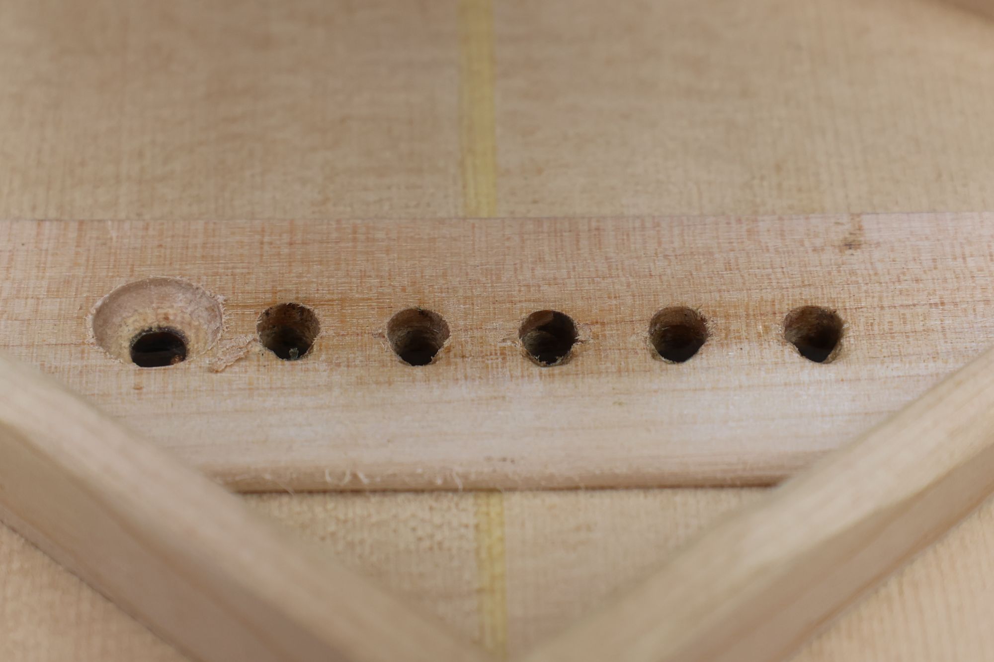 - 2.メイプル材からブリッジプレート・リペアのためのプラグを切り出します。