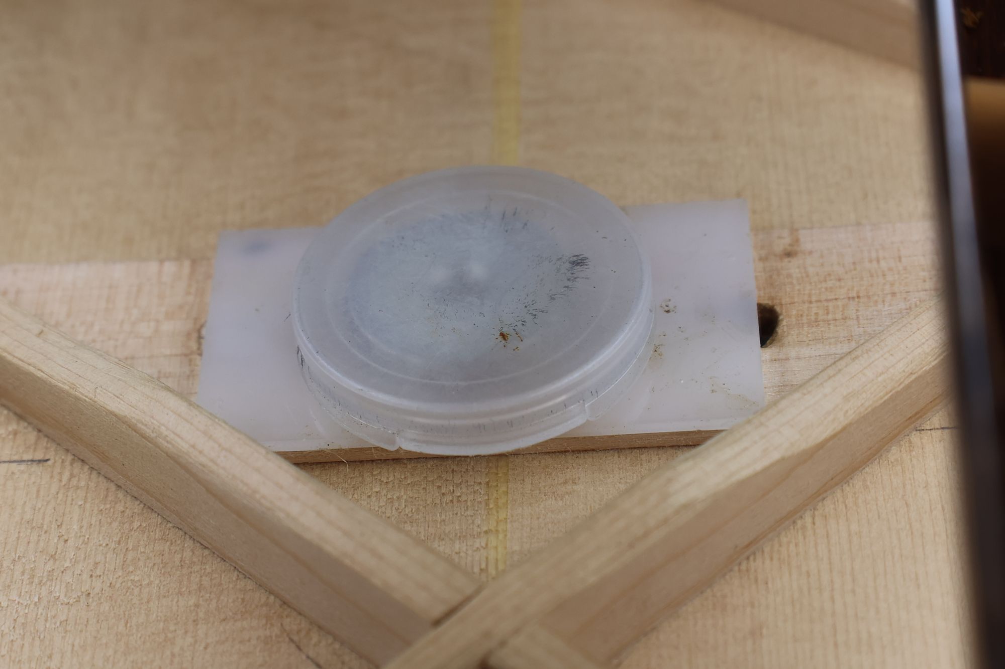 - 24.弦を張りました。エンドポールがプレートの上にしっかり固定されています。