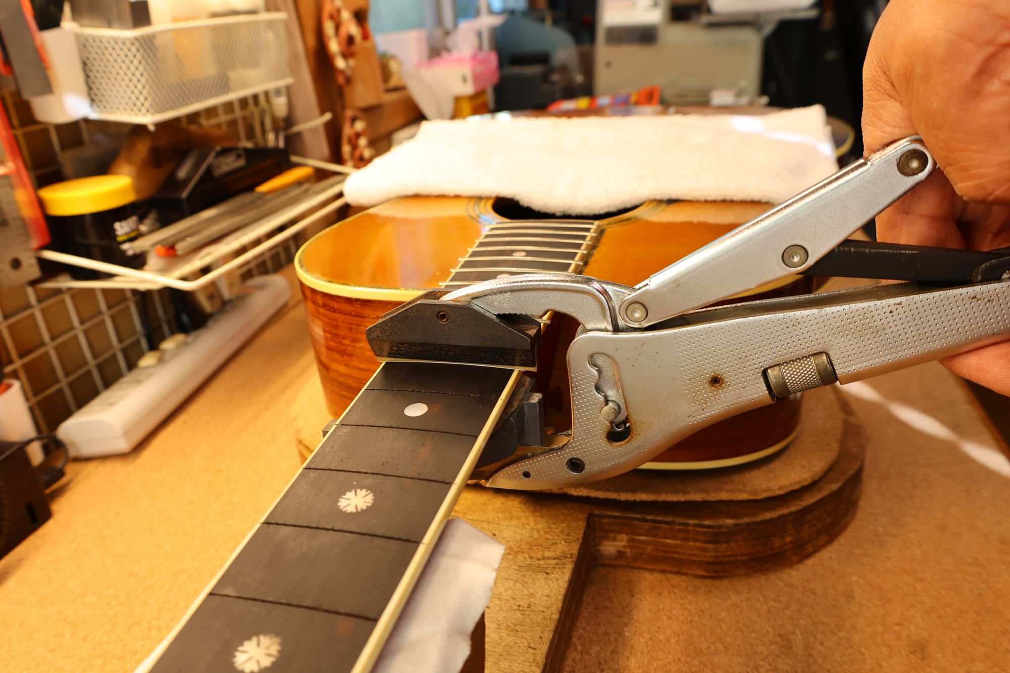 - フレットを抜いている様子です。