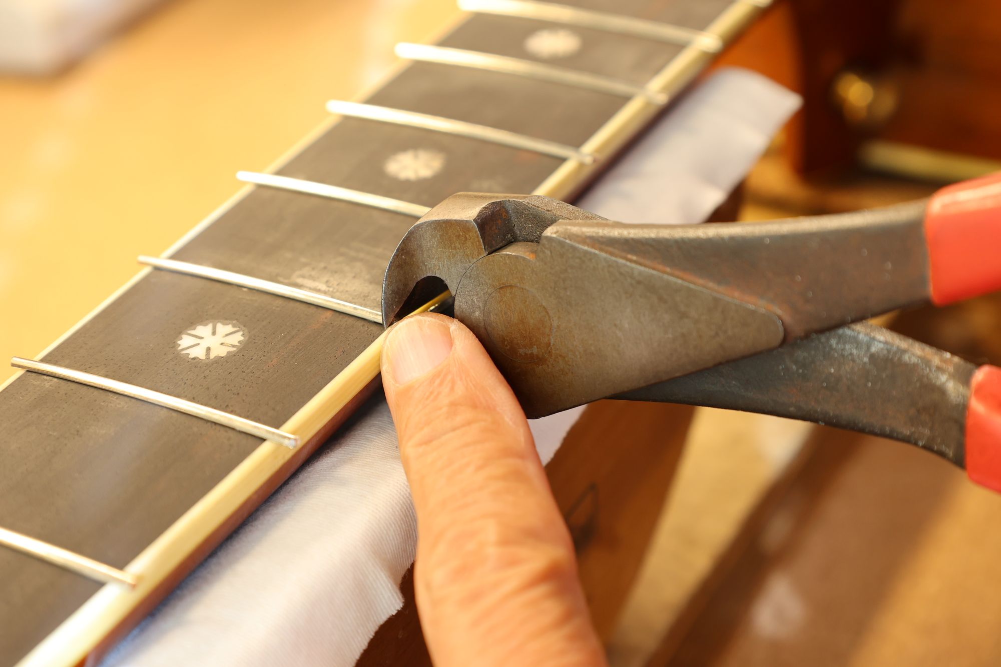 - 31.専用のヤスリを使ってフレット端を整形します。