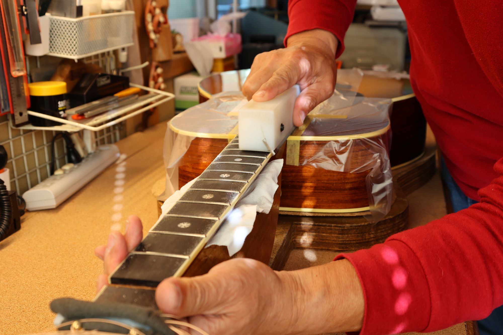 - フレット端整形の様子です。