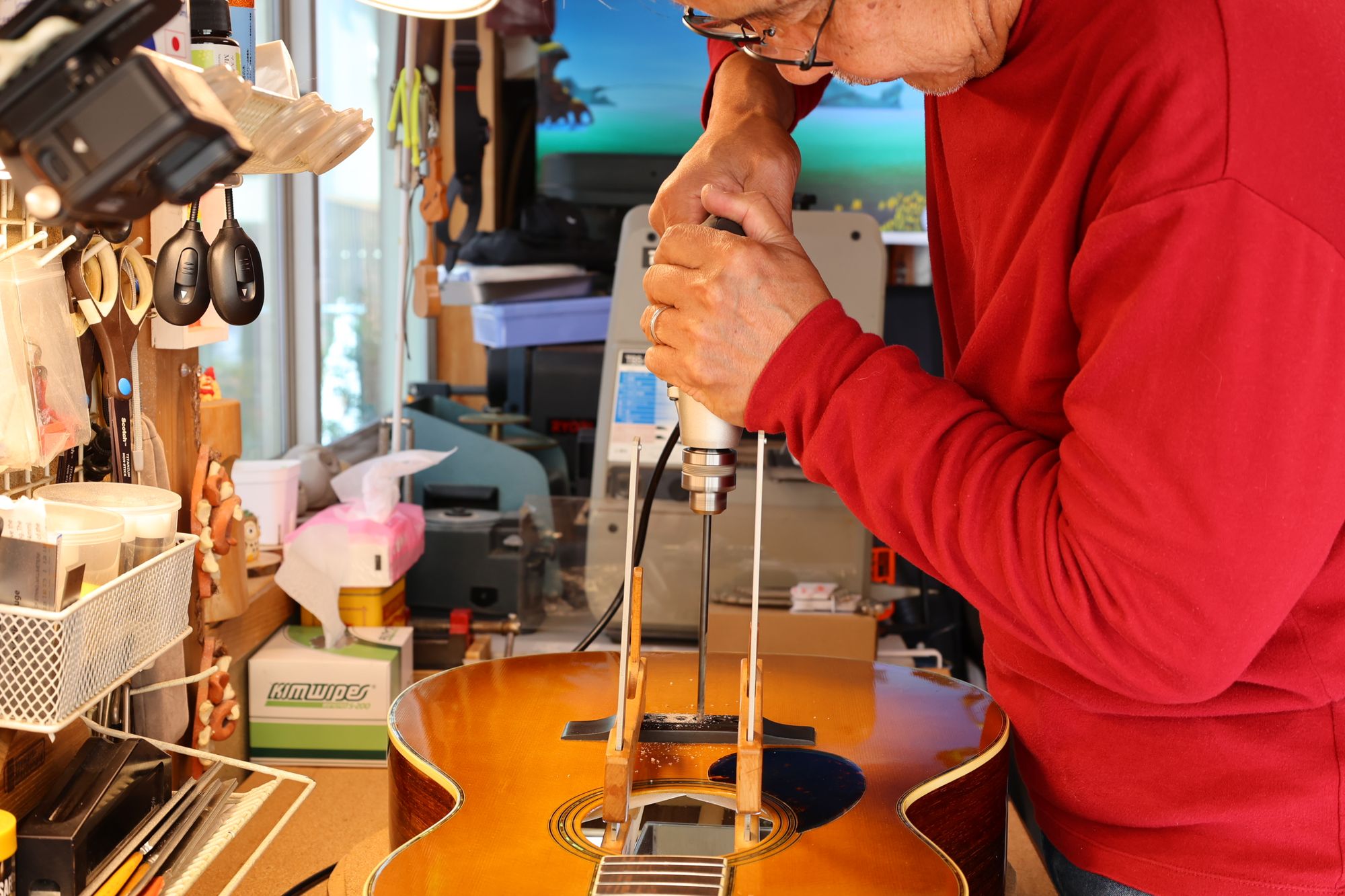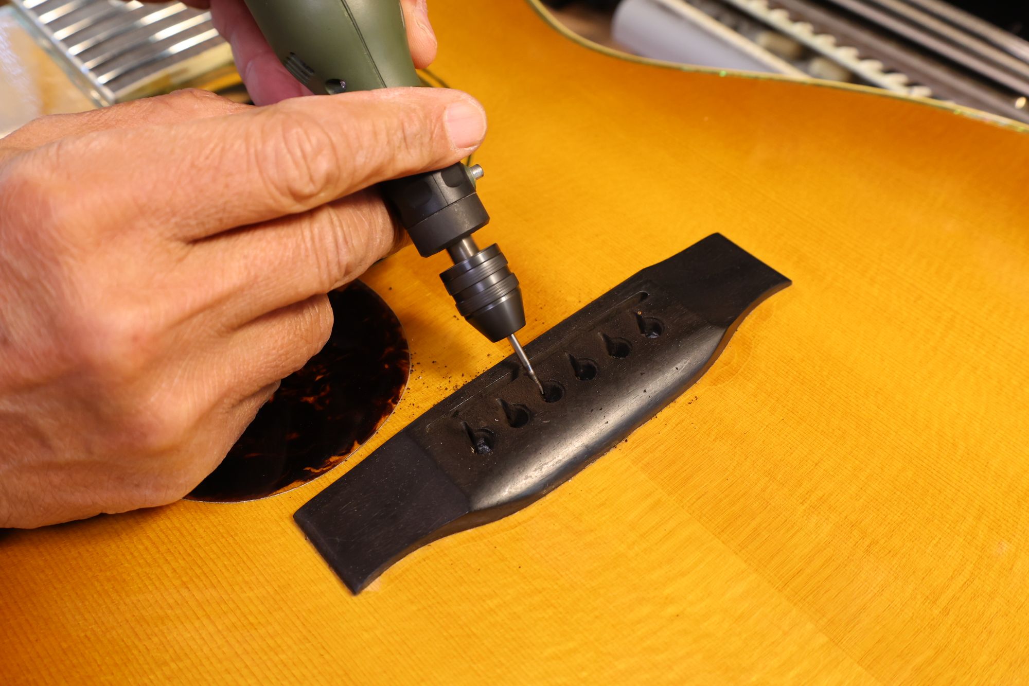- ブリッジピン穴を空けている様子です。