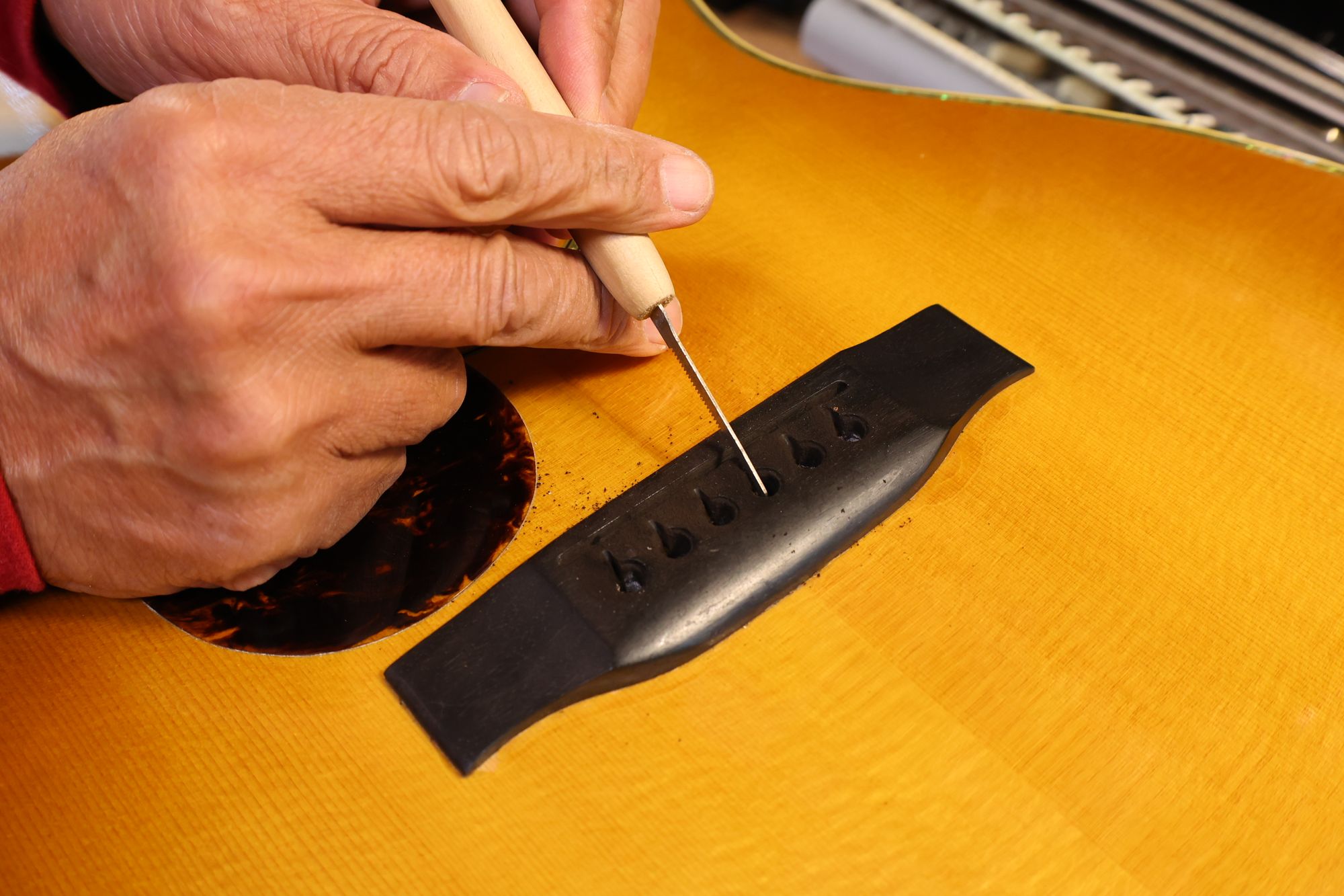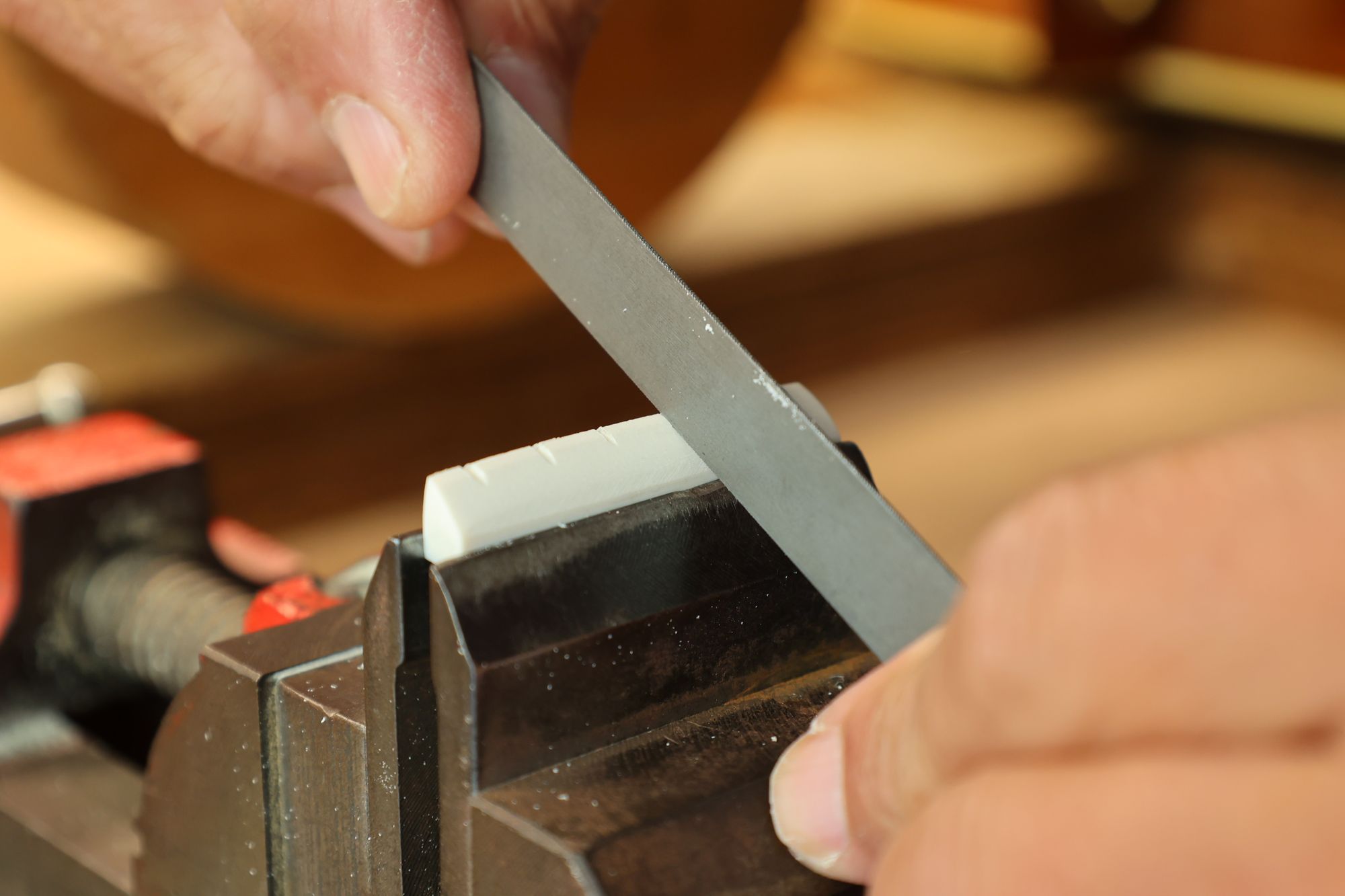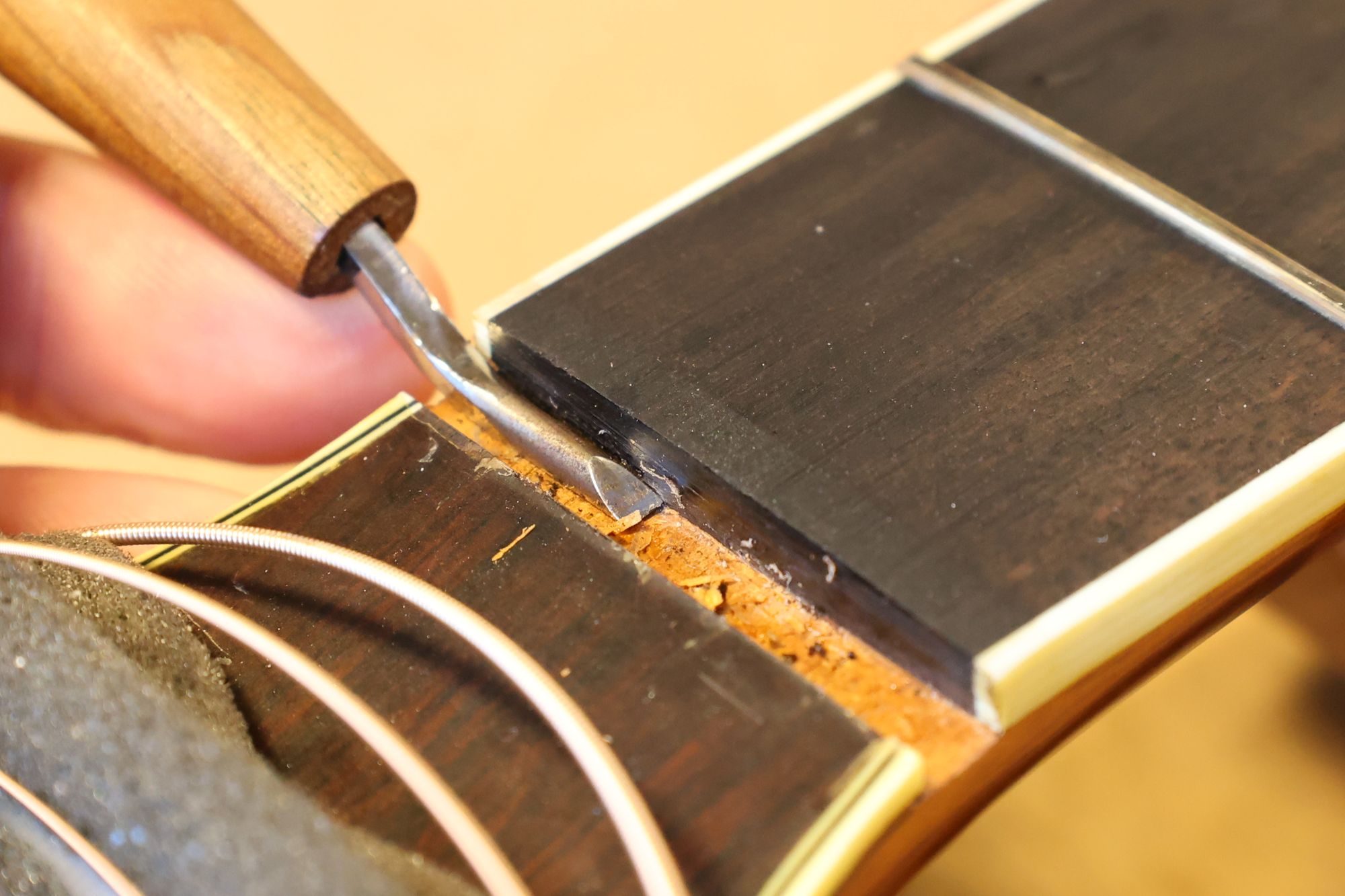 - 19.弦溝を専用のヤスリで彫り込んでいきます。
