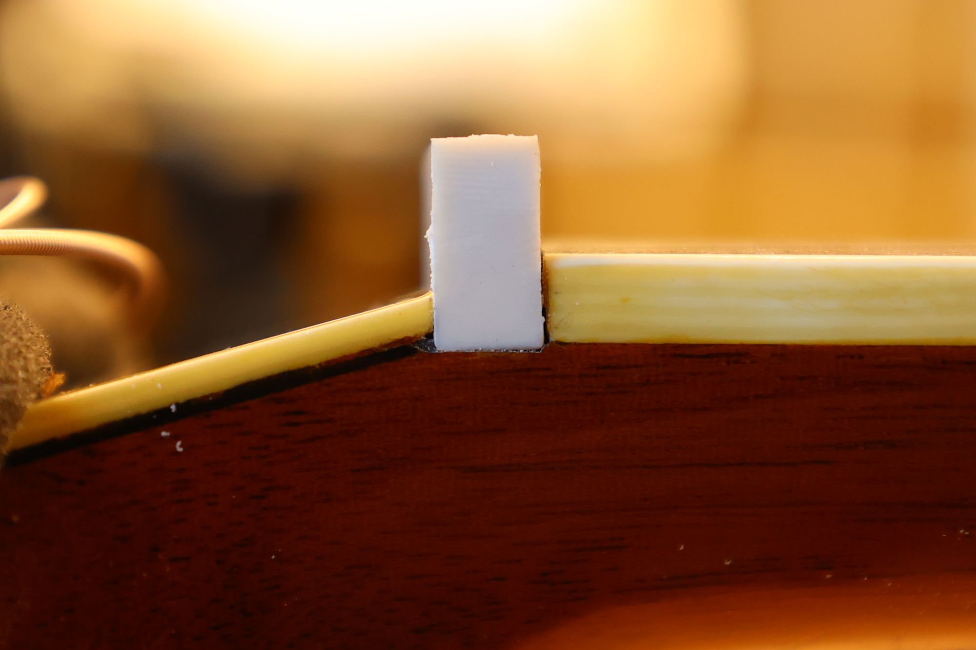 - 16.シムはネックとボディの隙間を埋める大切な素材ですので、マホガニなどの堅い木部材である必要があります。