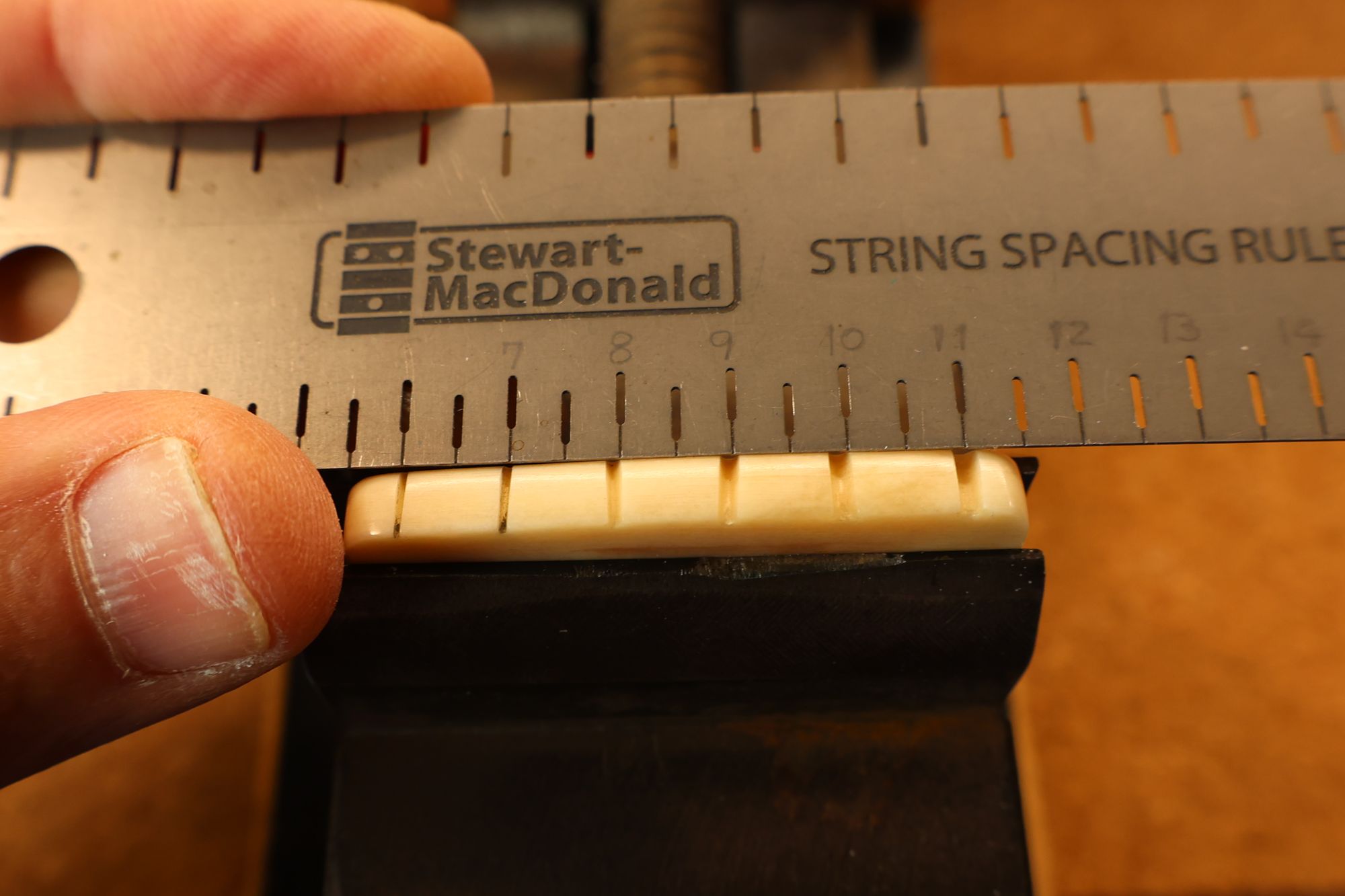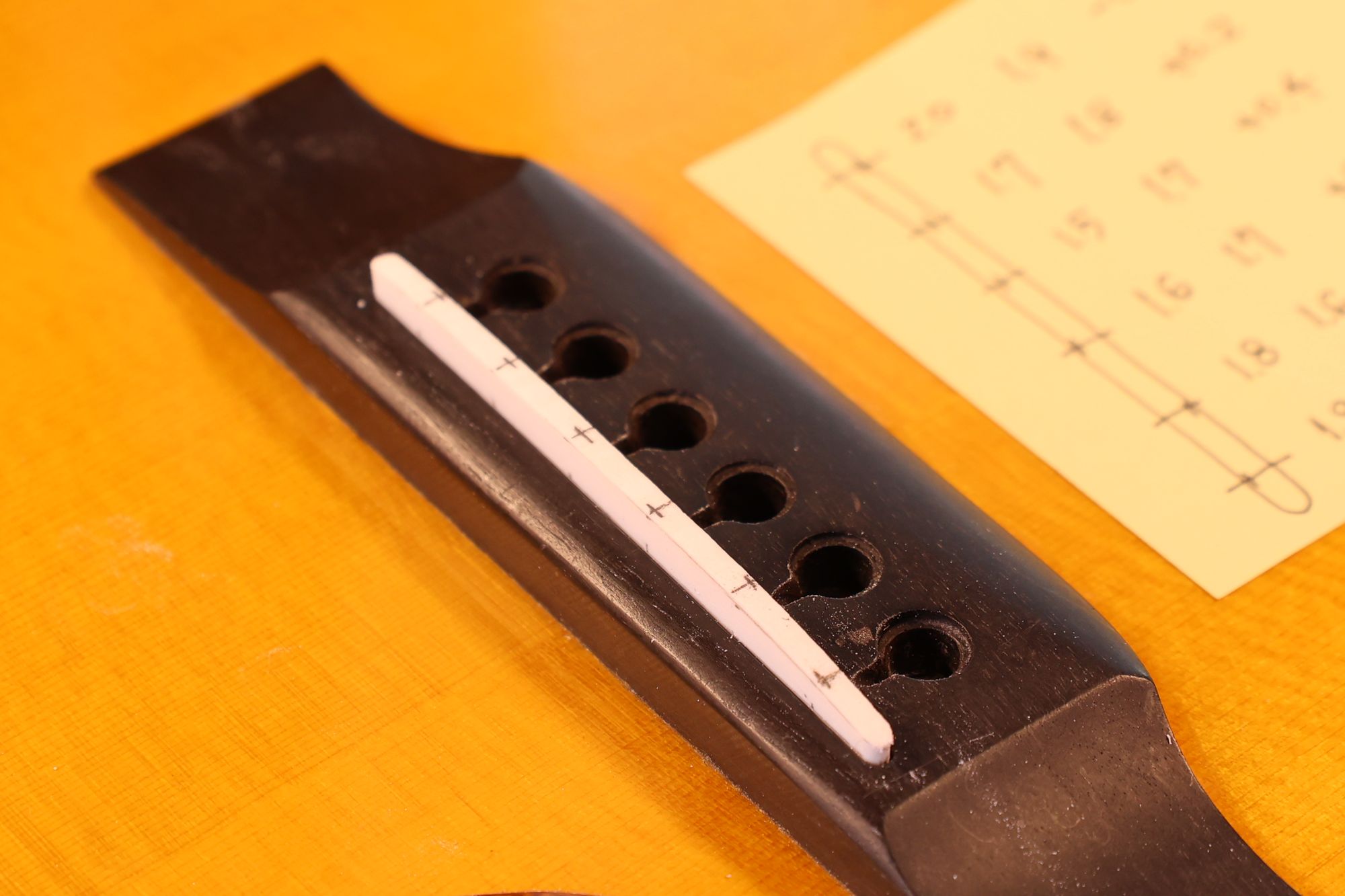 - 18.弦溝位置を新しいナットに書き込みます。