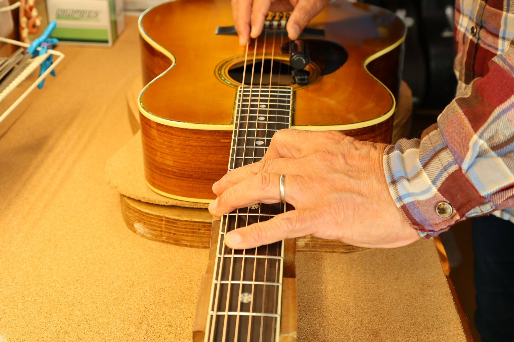 早速試奏してみたのですが、ネックリセットを施していただいたおかげで、以前よりも格段に弾きやすくなっていて驚きました。