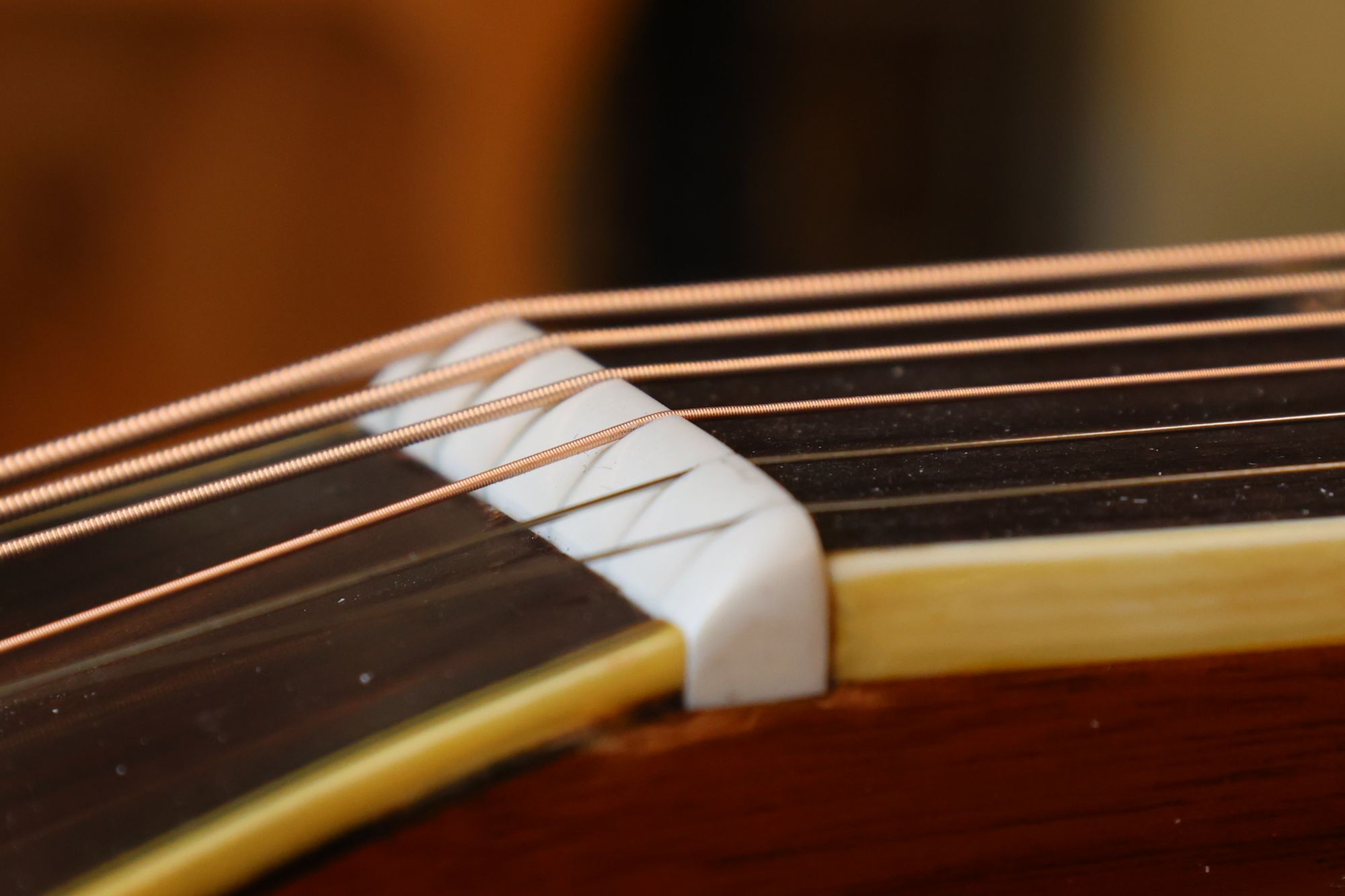 - 26.ナットと弦の接触面積と角度を最適化することによってギターの音色は大きく変わります。