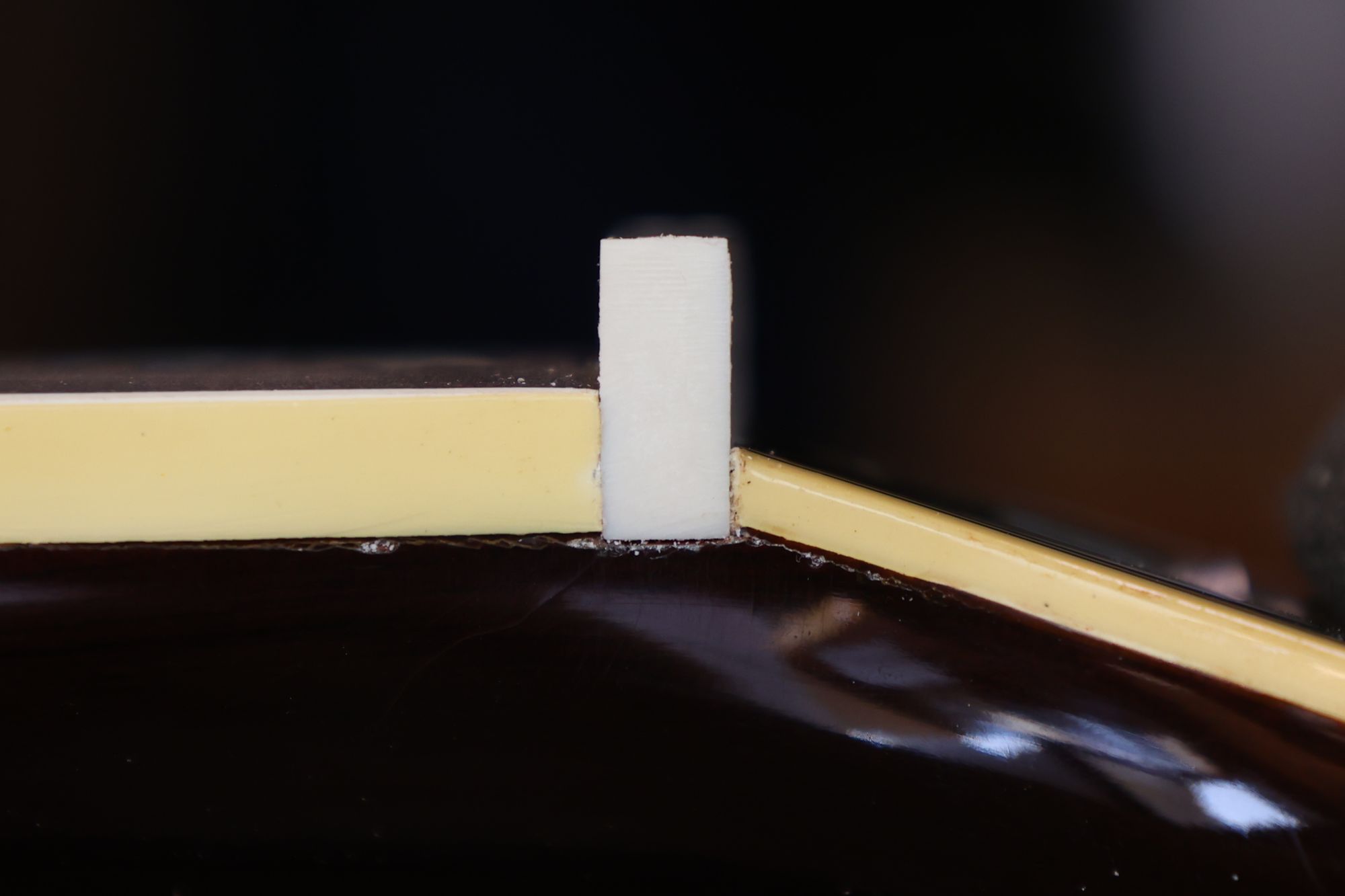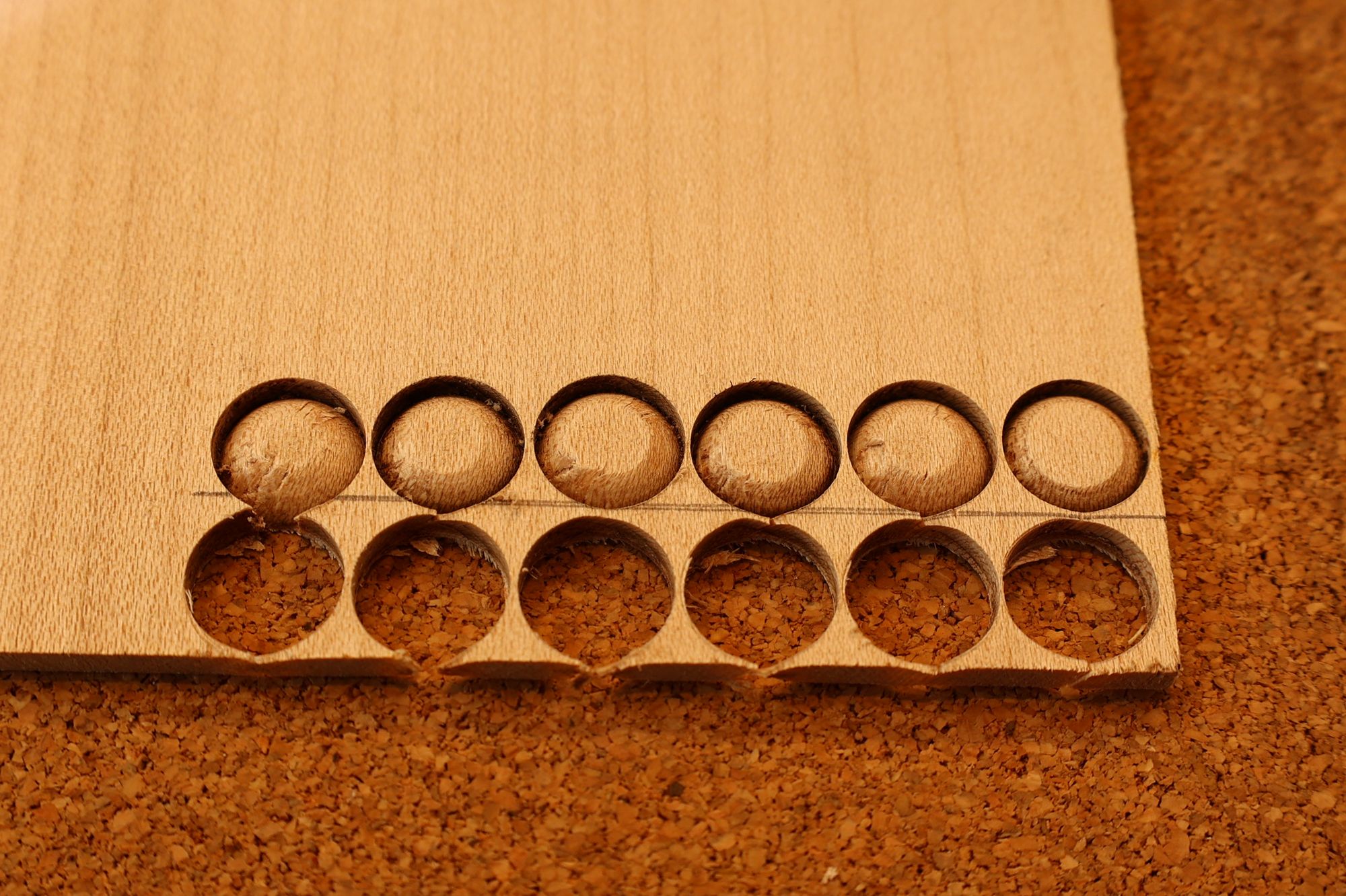 - 2.メイプル材からブリッジプレート・リペアのためのプラグを切り出します。