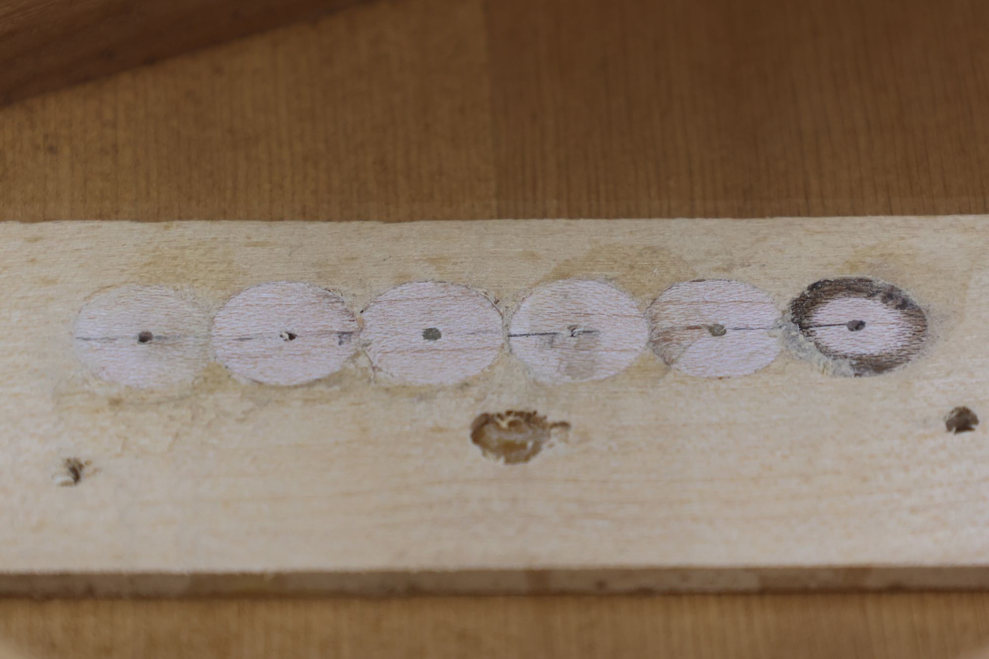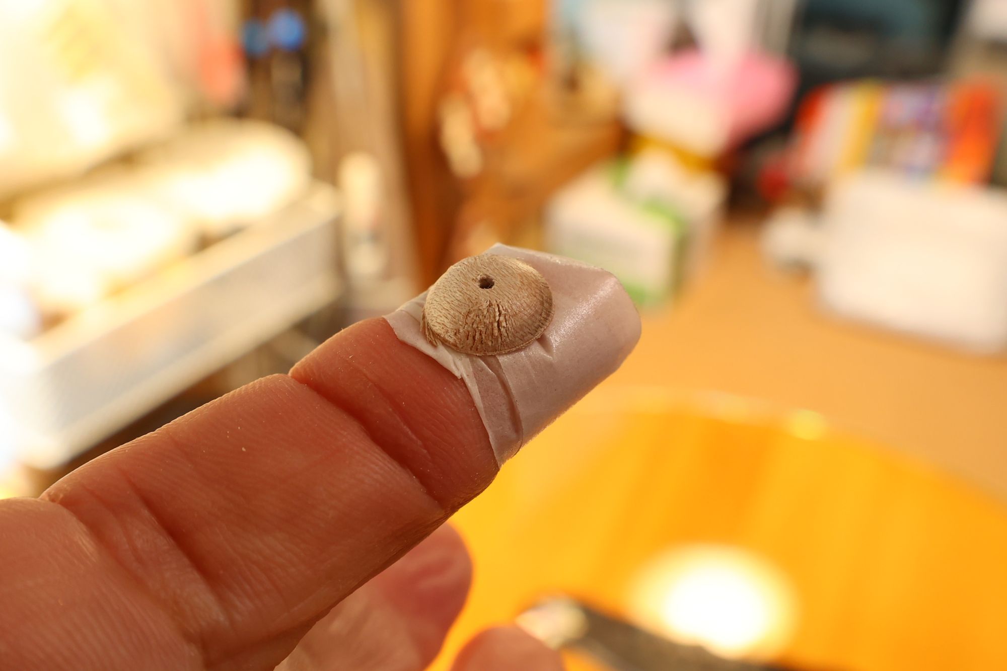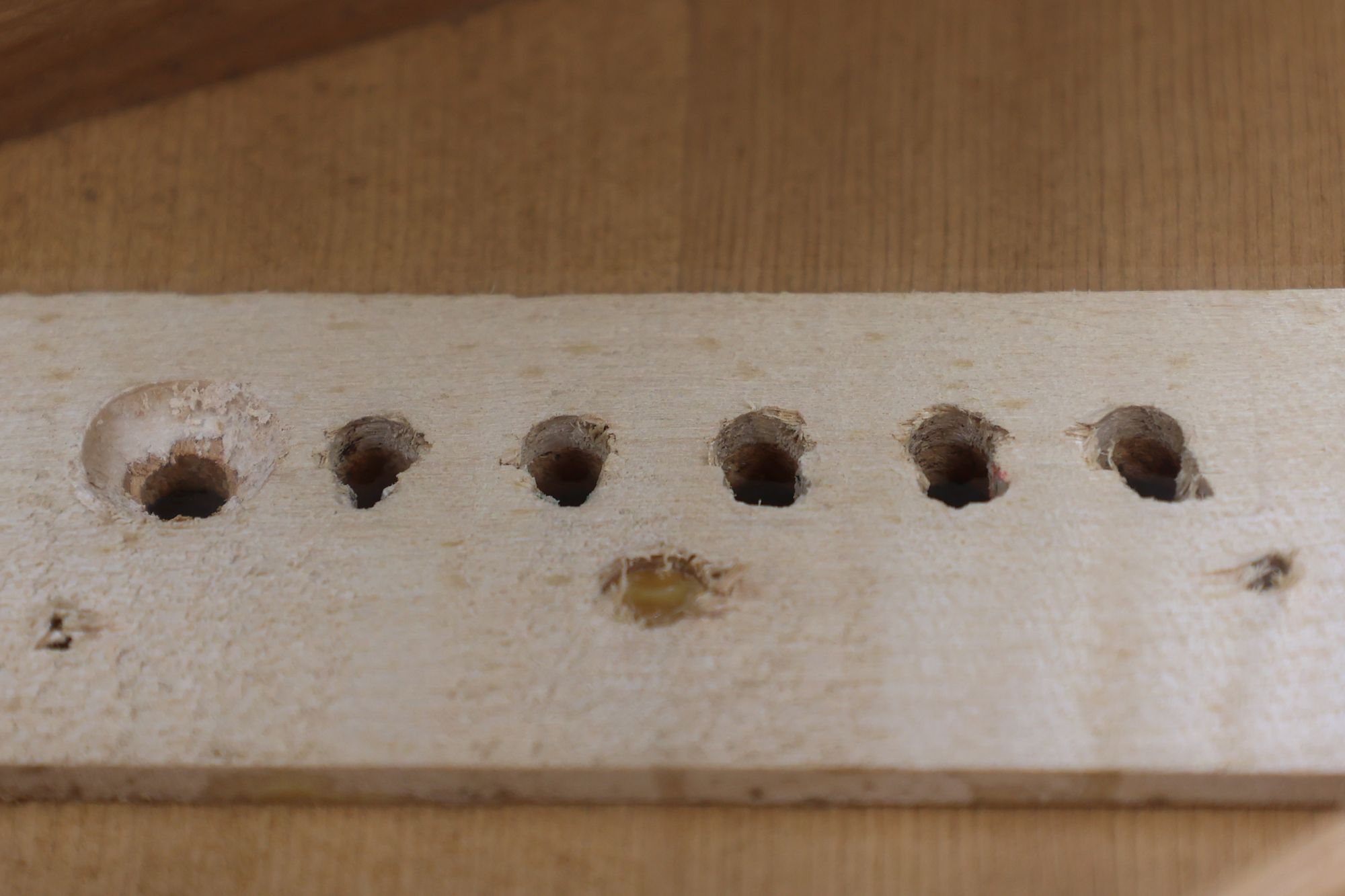 - 5.小穴があいたプラグです。まだ材に固定されています。