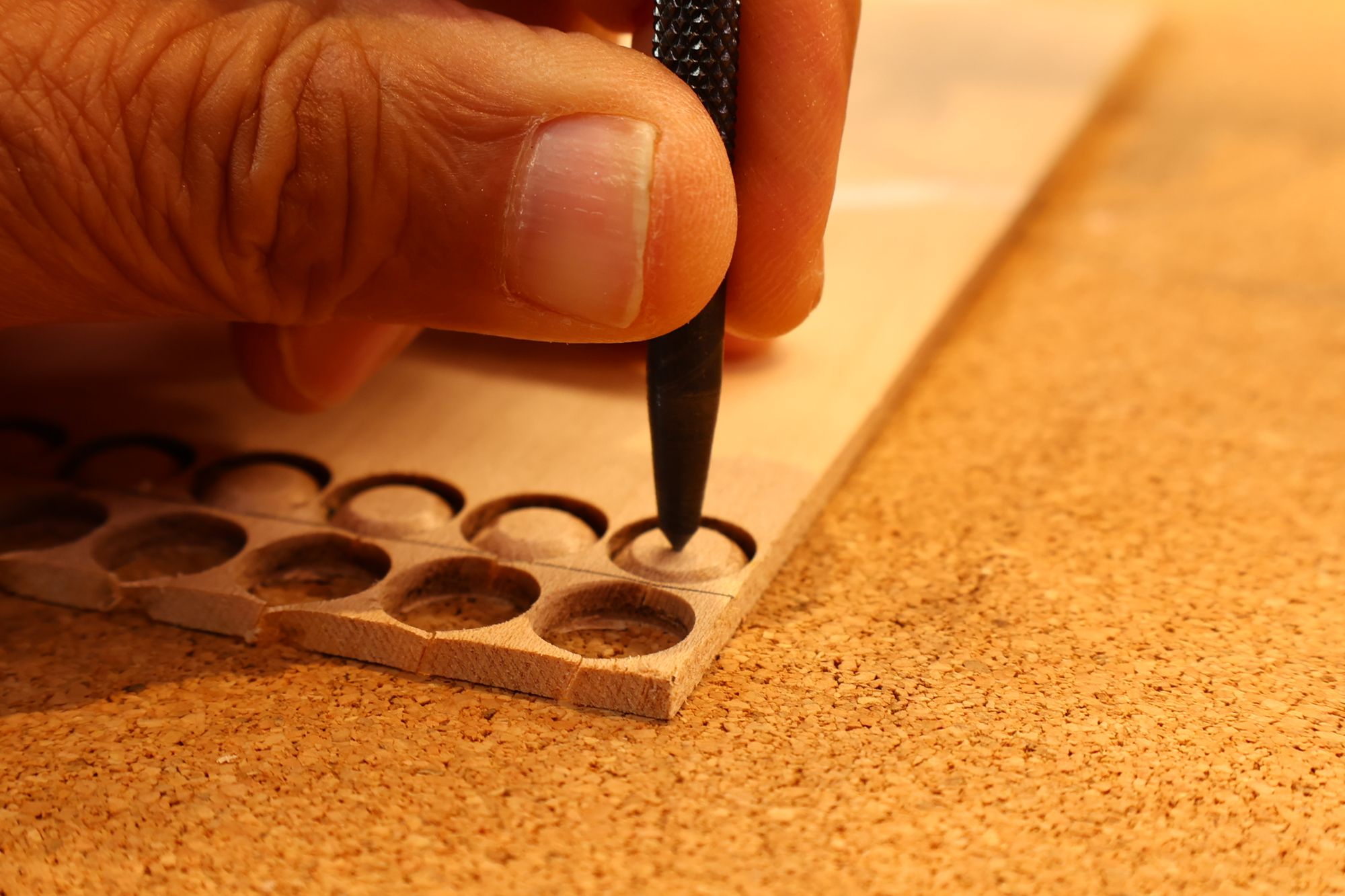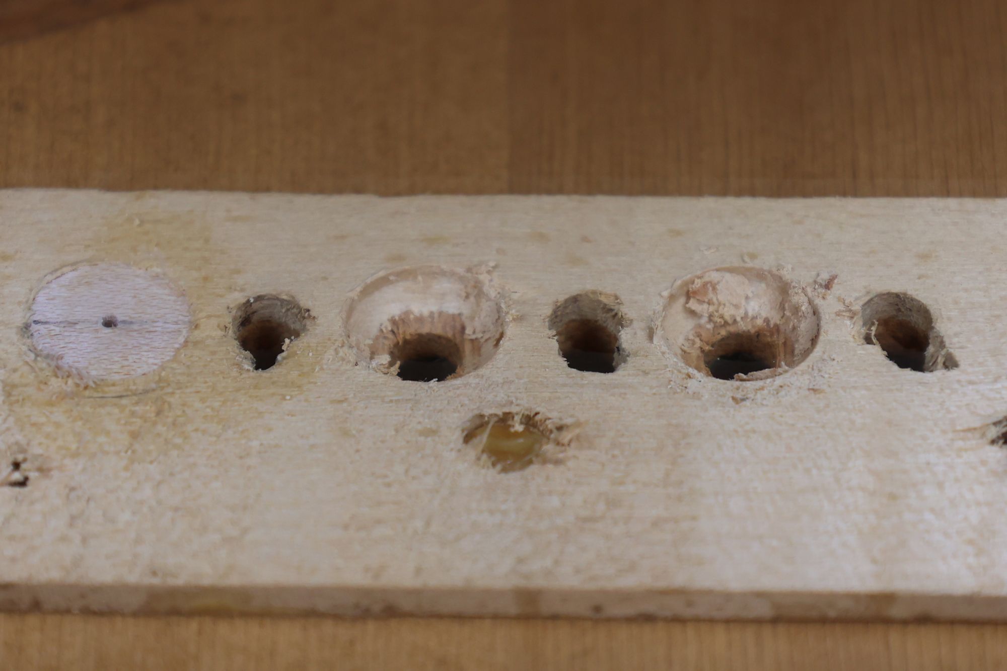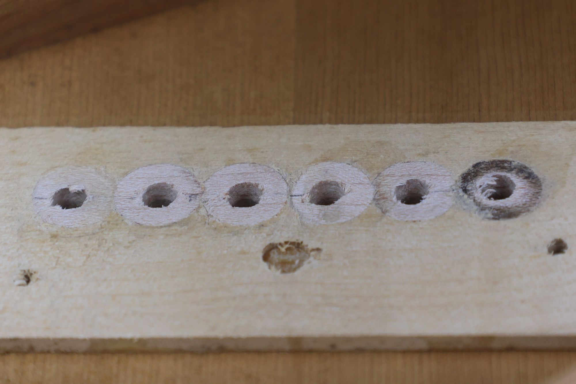 - 5.小穴があいたプラグです。まだ材に固定されています。