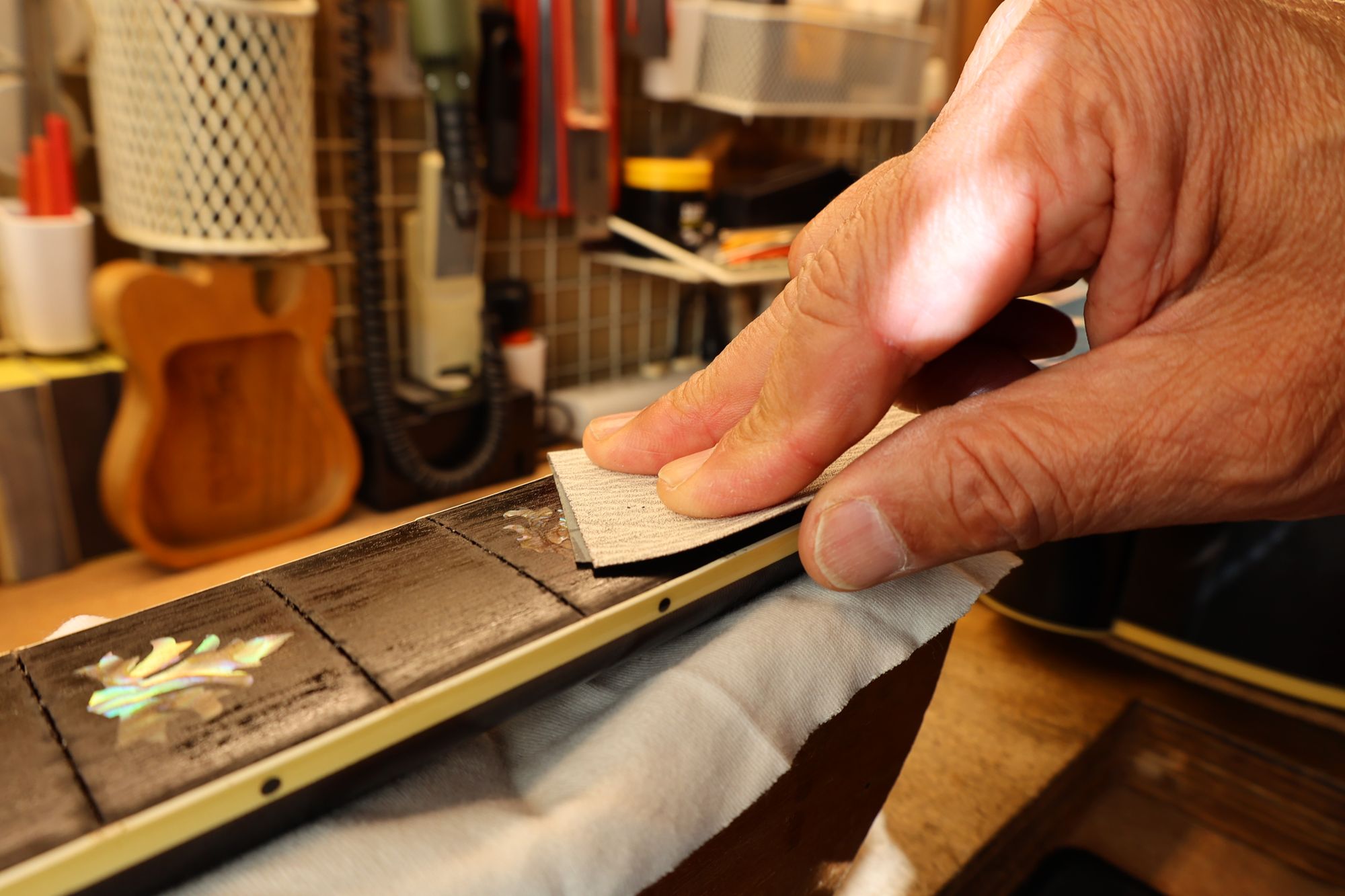 - 38.ネックをボディに密着させながらサンドペーパーを抜き取ります。