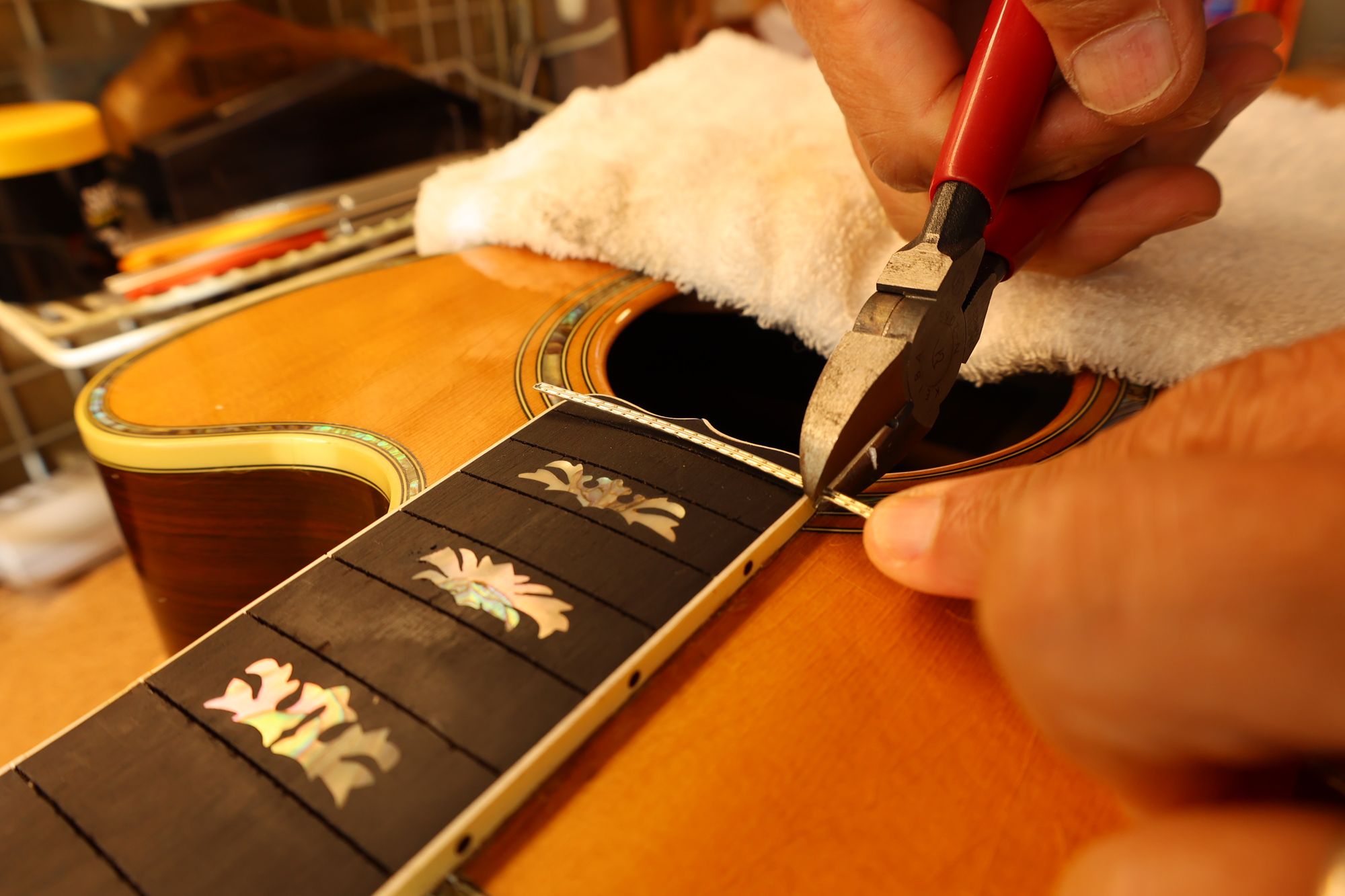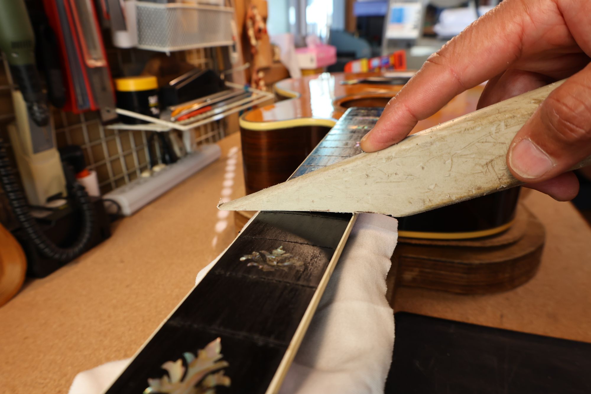 - 31.専用のヤスリを使ってフレット端を整形します。