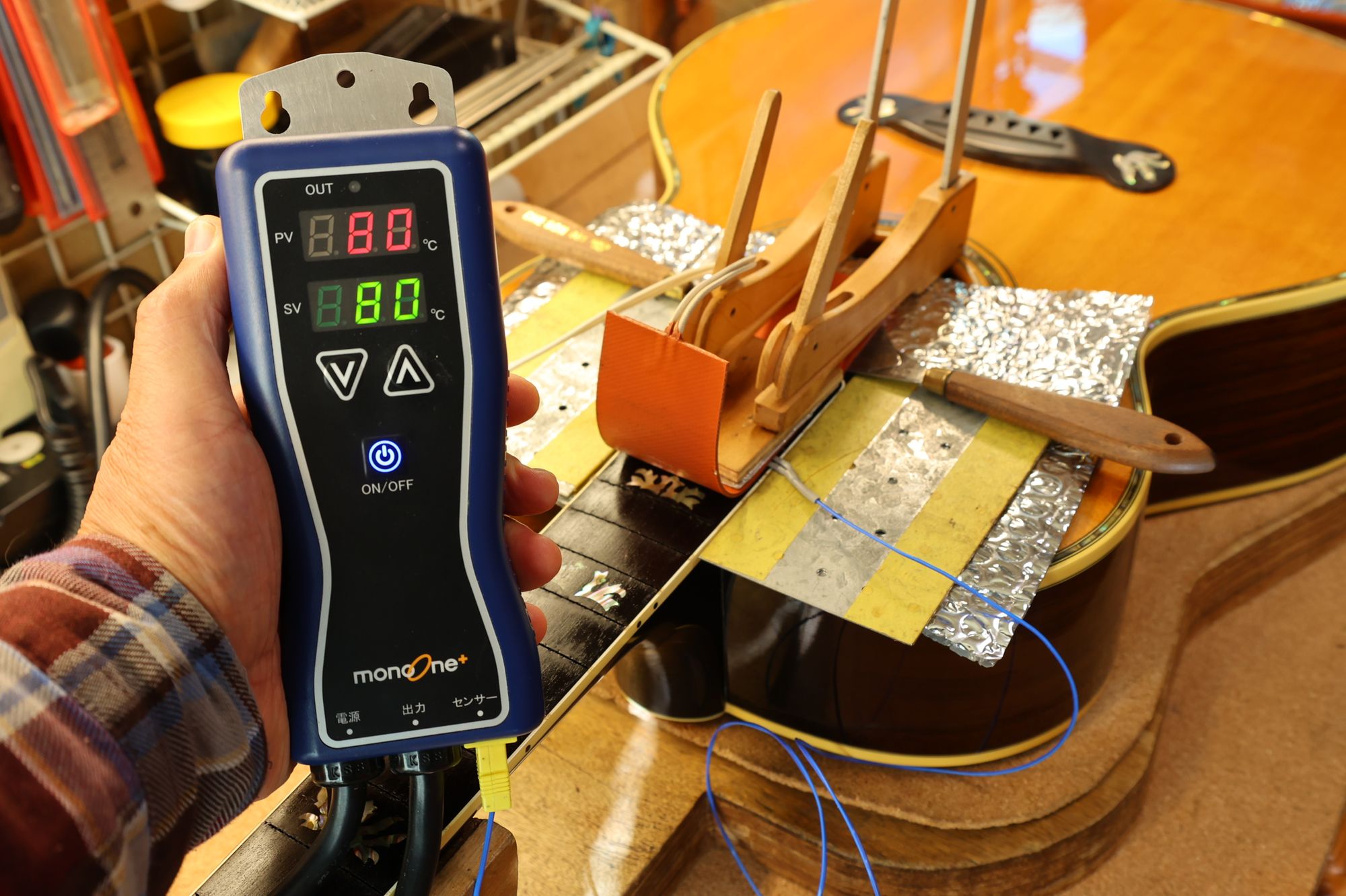 - 6.ヒーターに通電します。フィンガーボードの温度をモニタしながら徐々に温度を上げていきます。