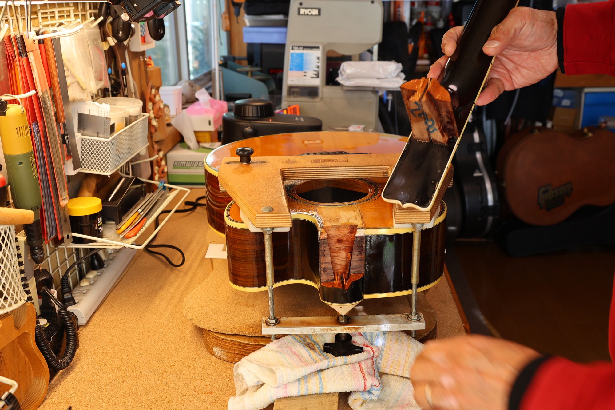 今回Gibson J-2000をリペアさせていただいて、改めて感じたのは、ネックとボディの接合性の重要さでした。