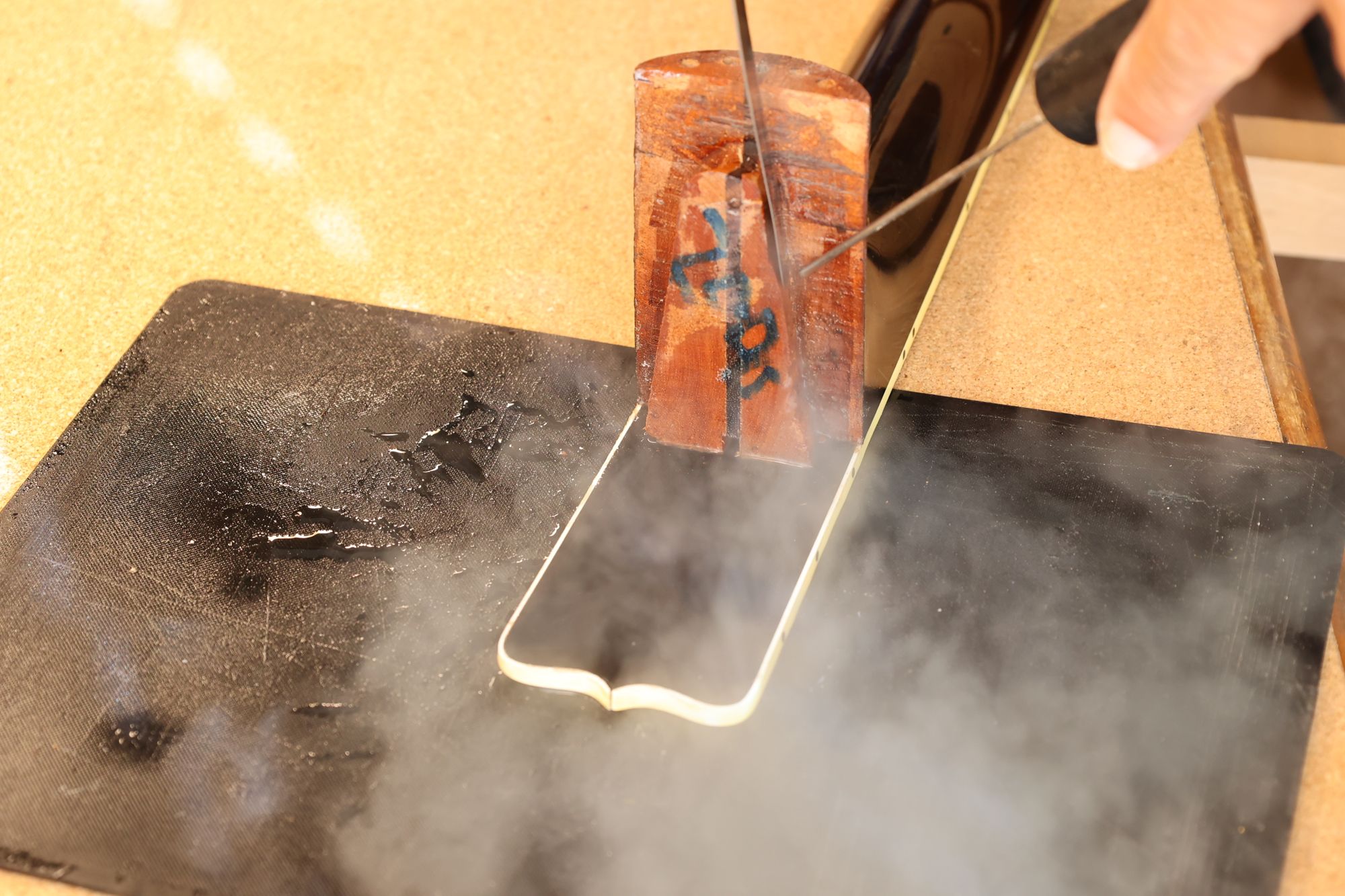 - 4.ラバーヒーターを使ってフィンガーボードを暖めます。