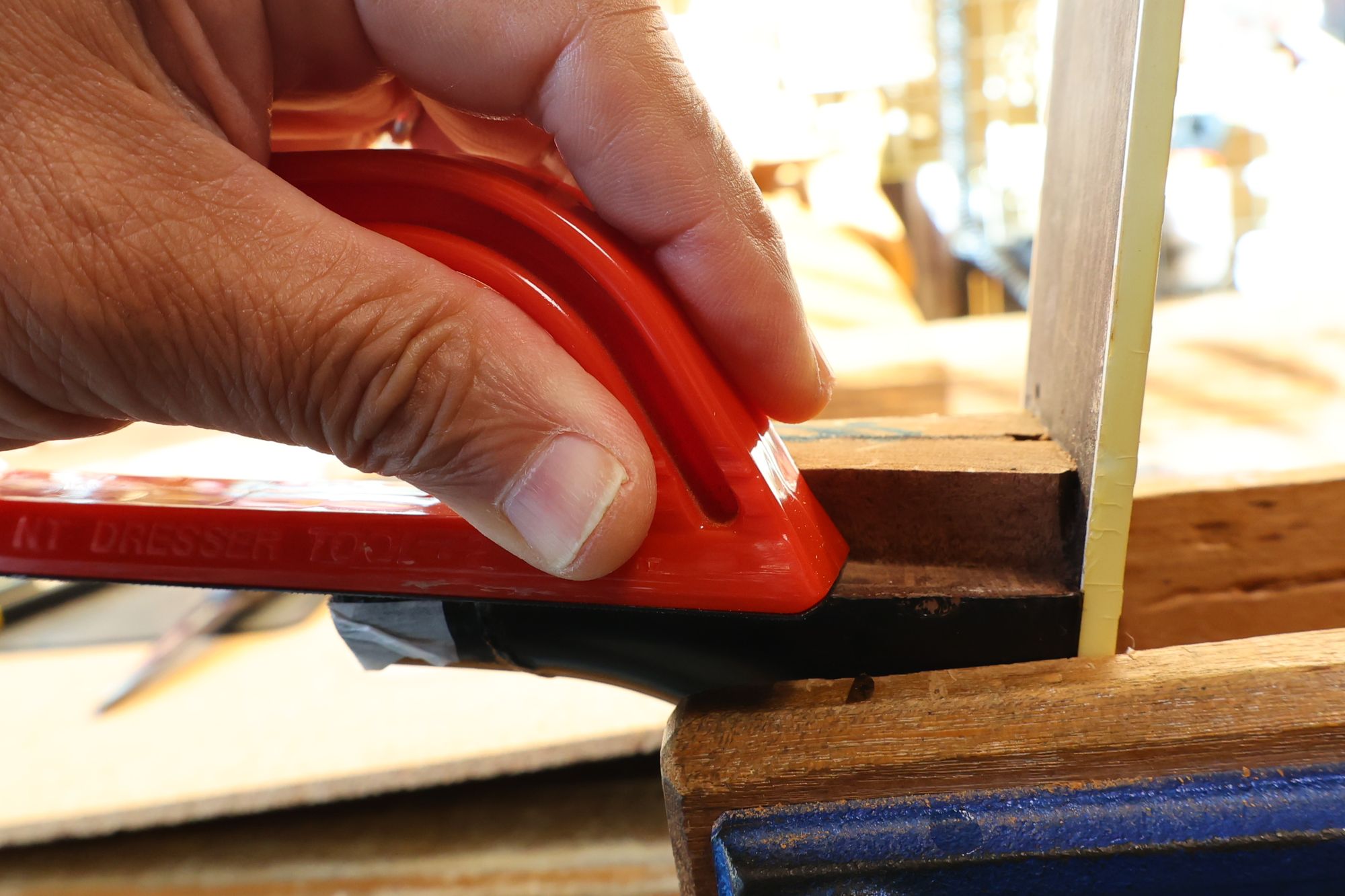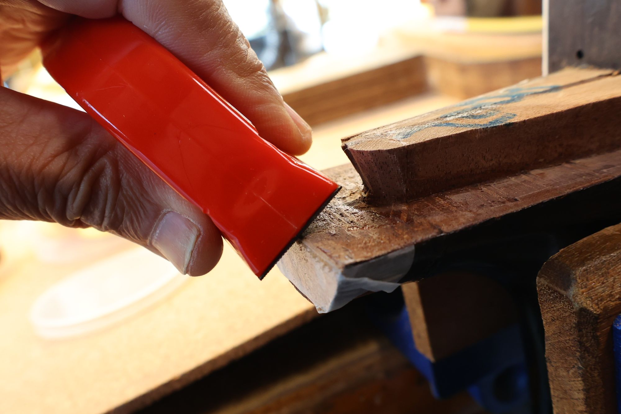 - 27.古い接着剤(ニカワ)を削り落としておきます。