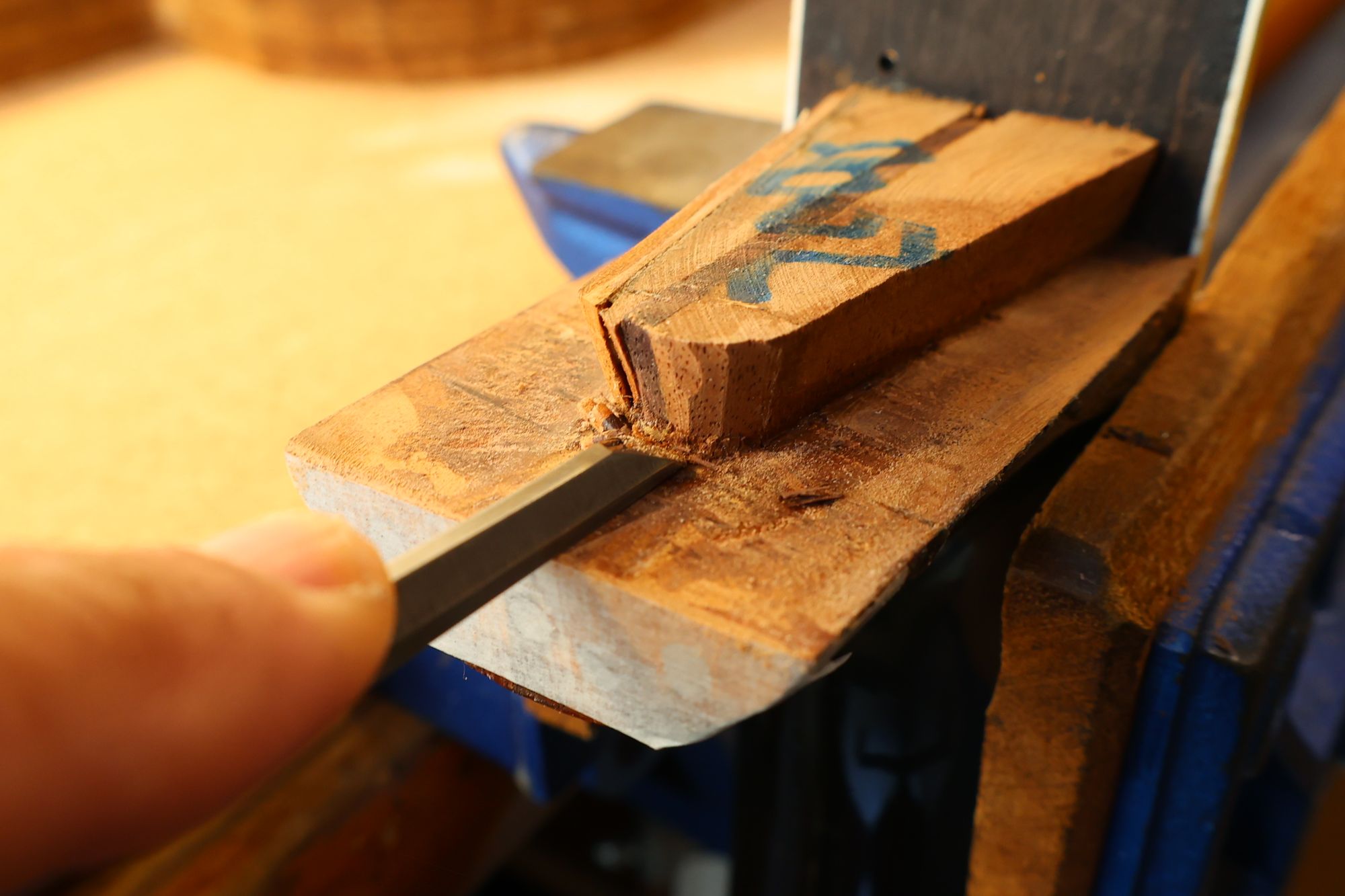 - 34.ヒール先端部はよく研いだノミで削ります。