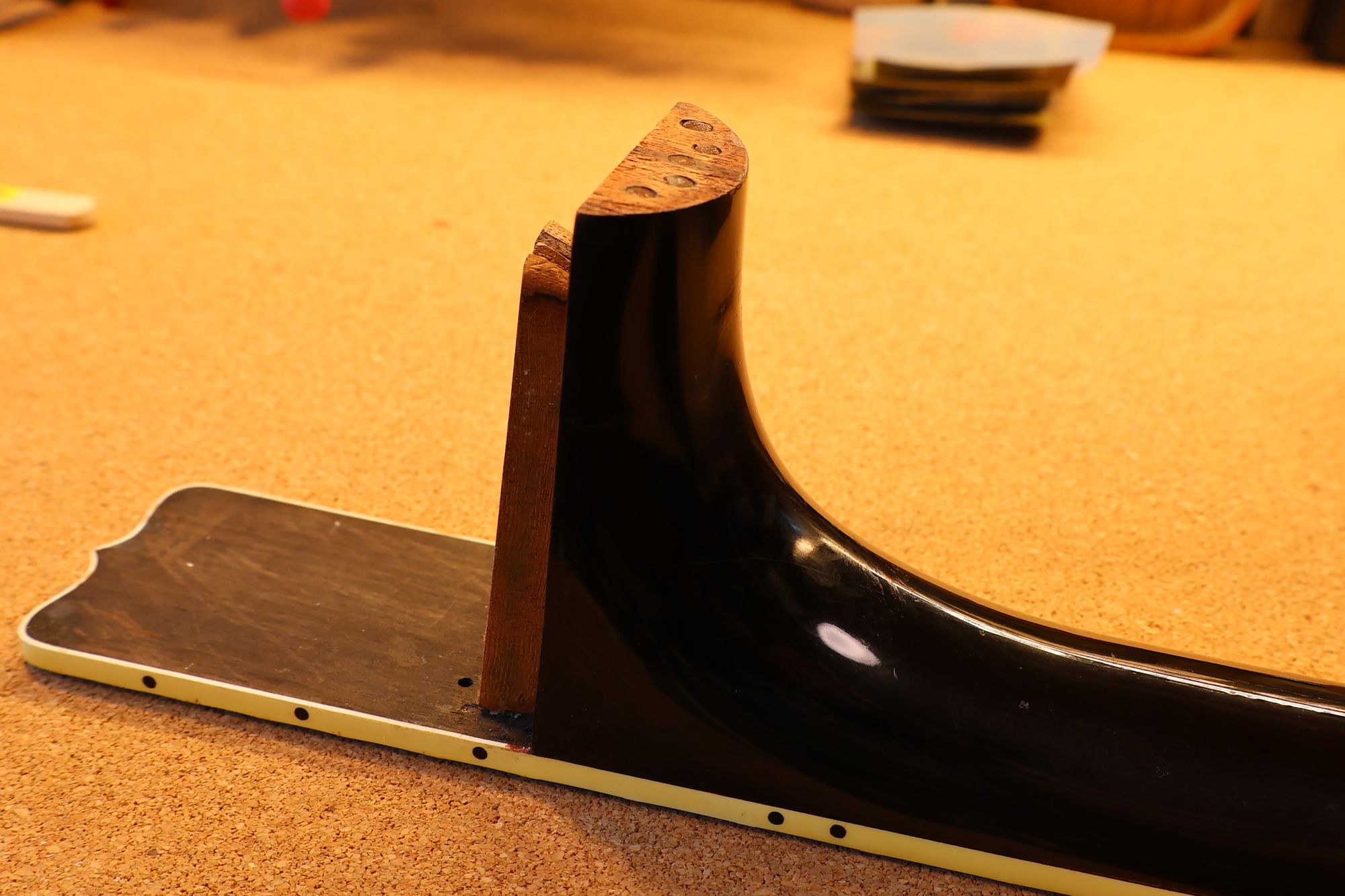 - 49.ネックとボディを接合します。ゆっくりジョイント部にネックを置きます。
