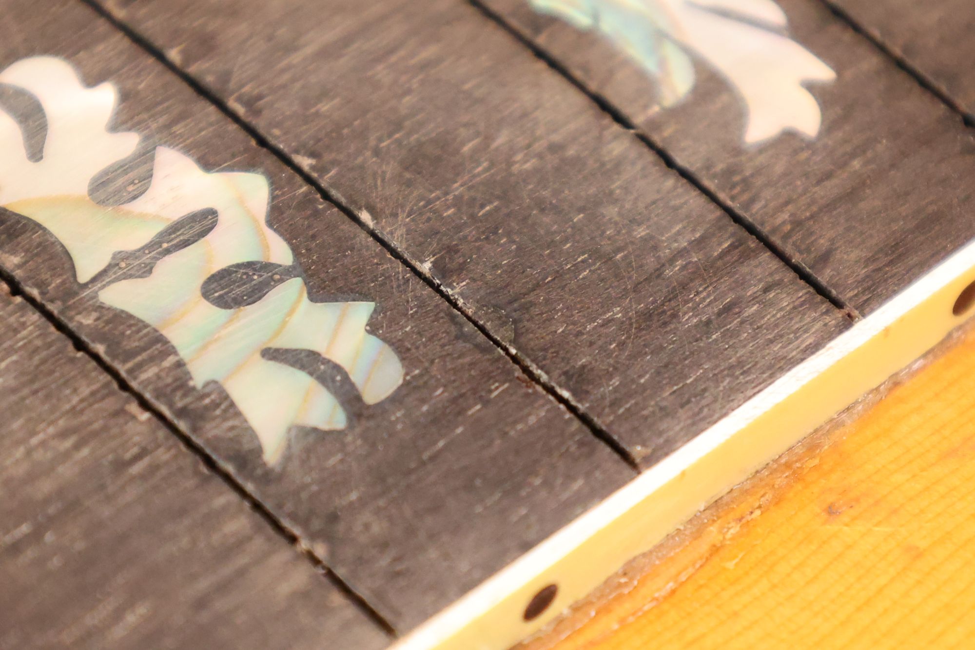 ボディトップのピック打痕は綺麗に修復され、フレットもピカピカでエッジ仕上げも良い感触です。