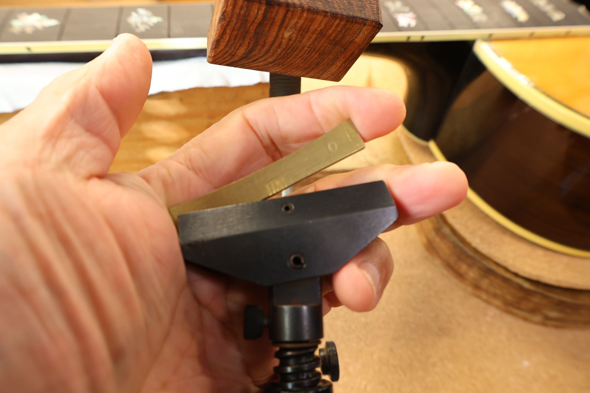 - ネックとボディの直線性と取り付け角度を確認している様子です。