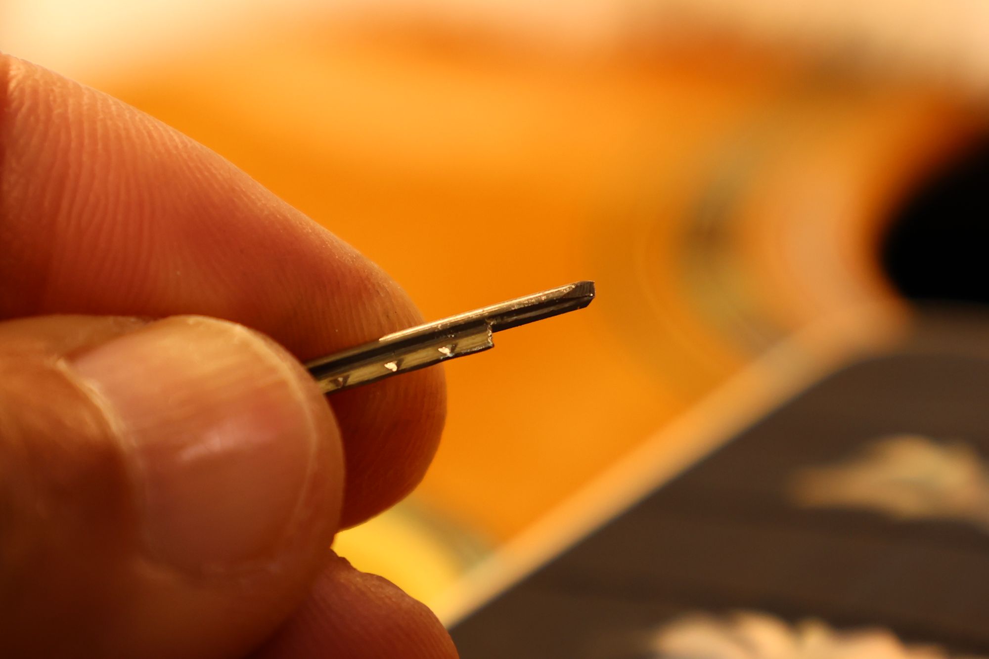 - 26.ナットと弦の接触面積と角度を最適化することによってギターの音色は大きく変わります。