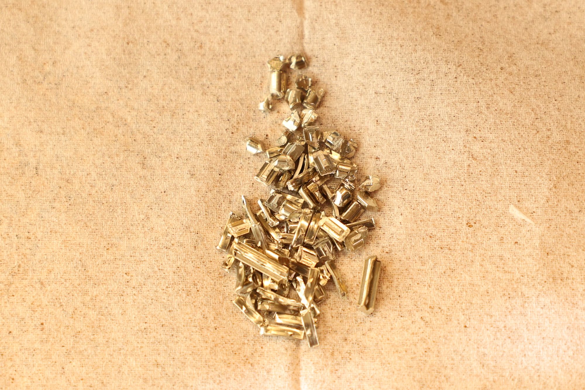 - 30.カットしたフレット片は失わないように一カ所にまとめておきます。