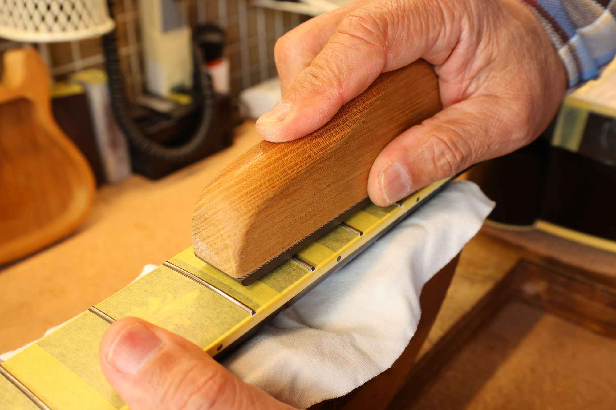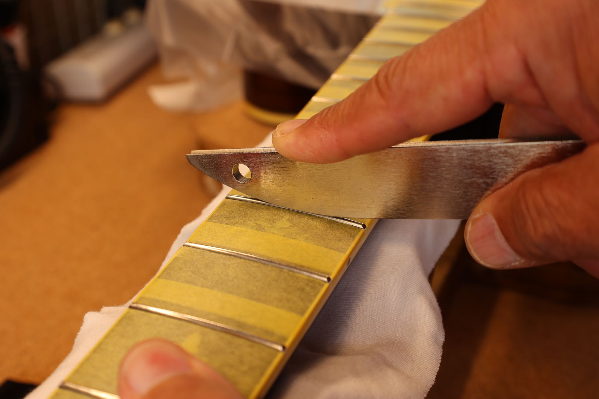 - 39.平らになったフレット山を専用のヤスリで丸くしていきます。