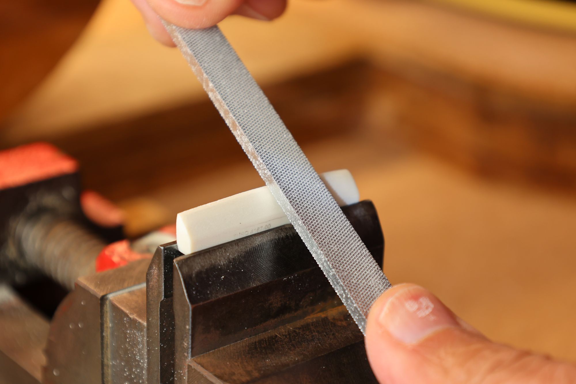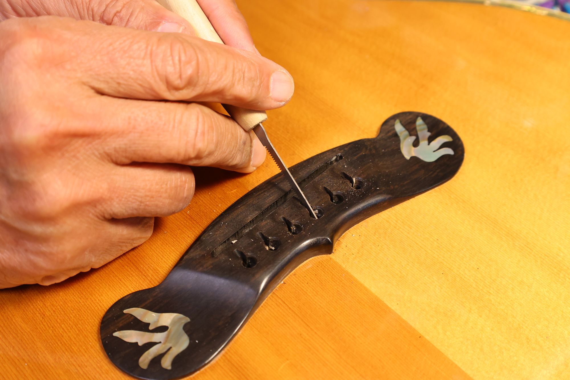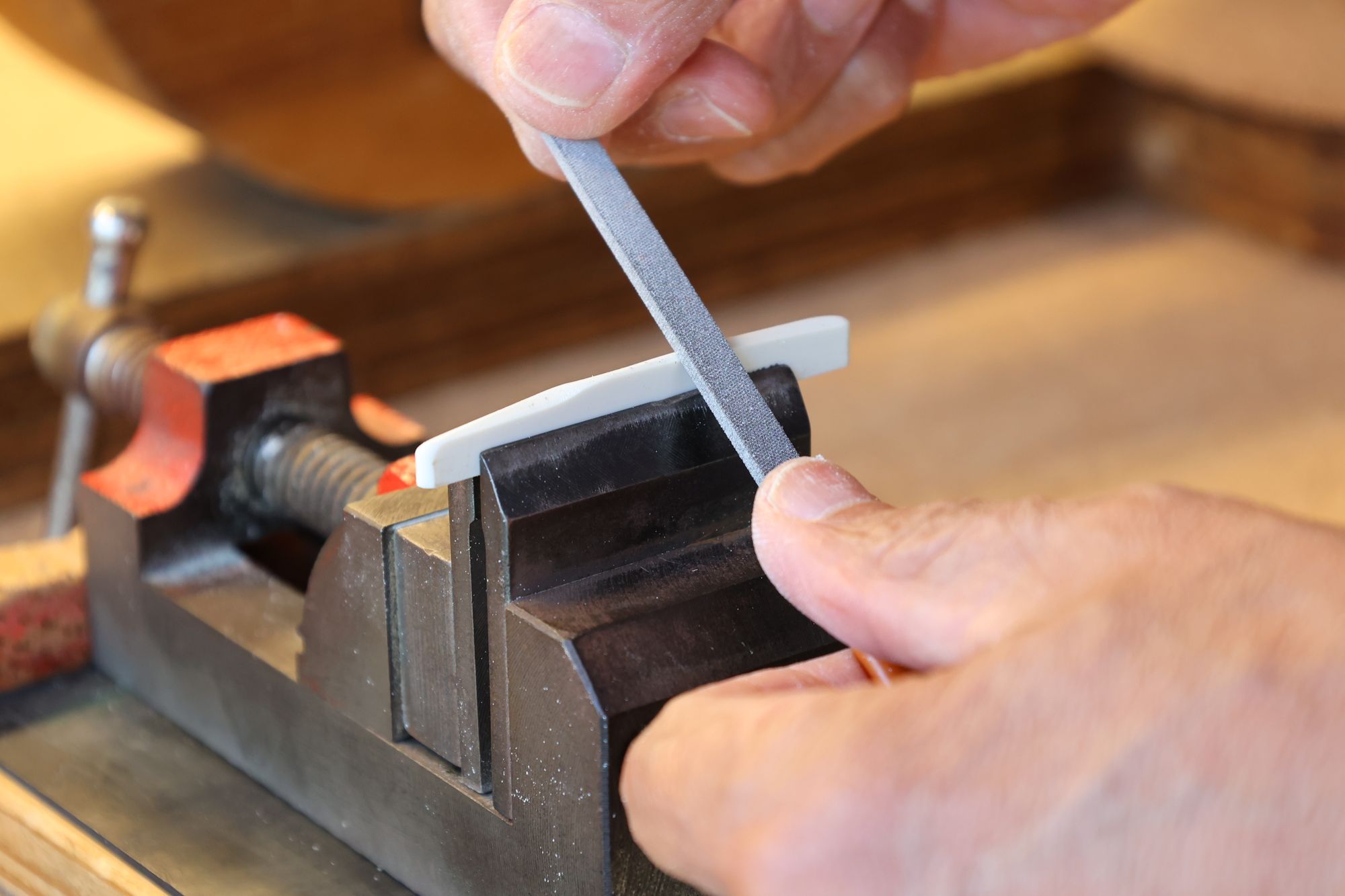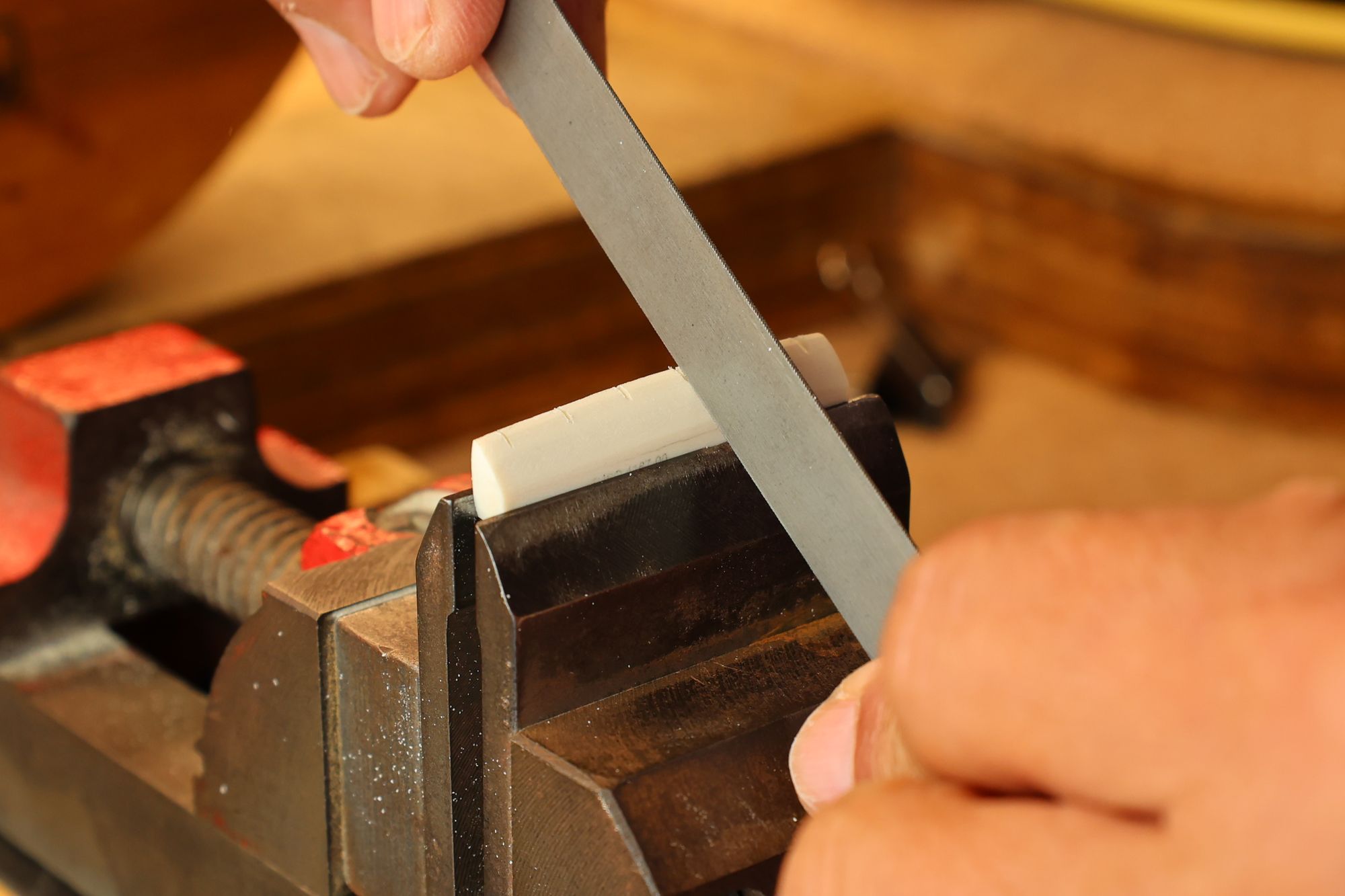 - 19.弦溝を専用のヤスリで彫り込んでいきます。