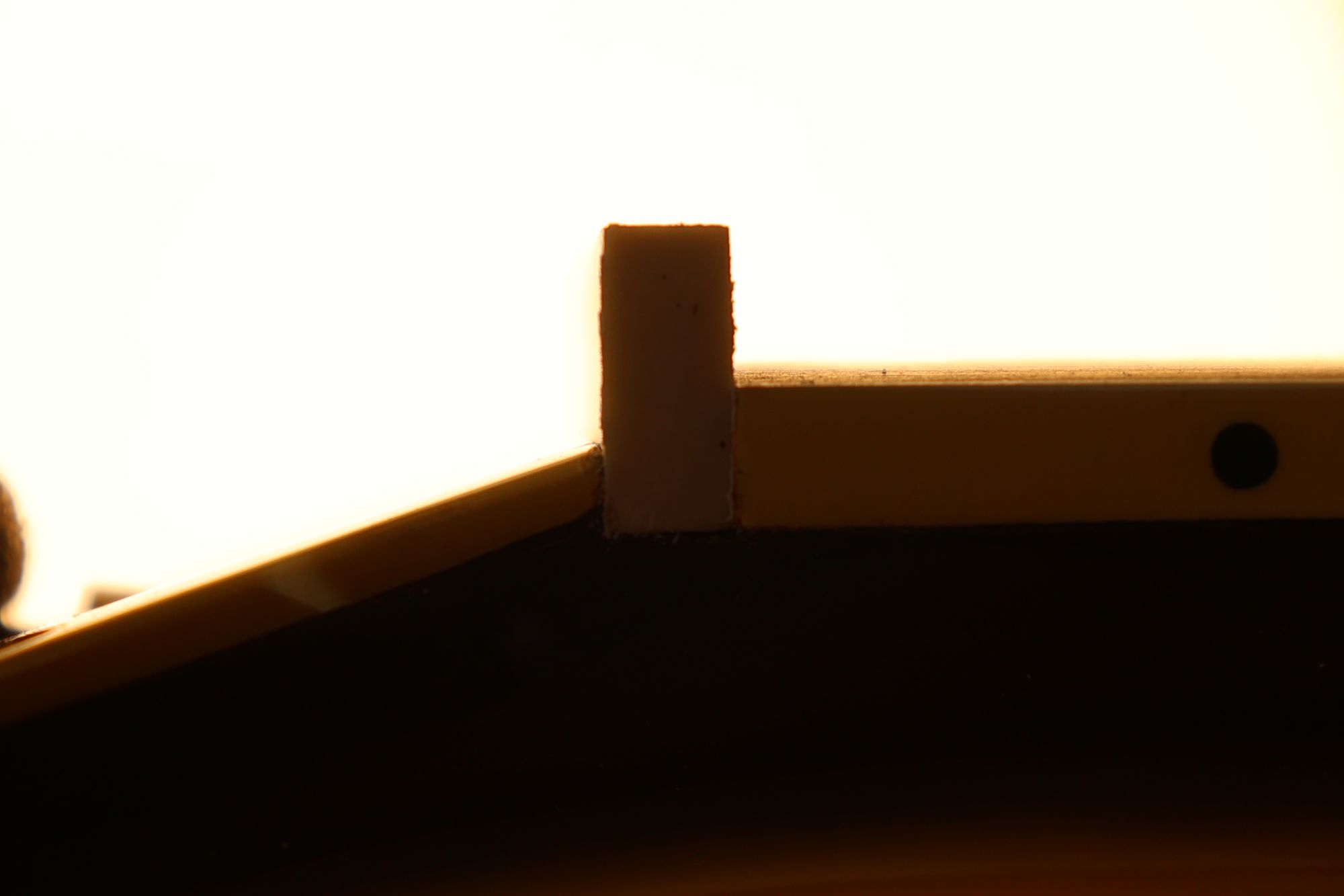 - 45.フィンガーボードがブリッジ面上端を指すようにネック取り付け角度を調整しました。