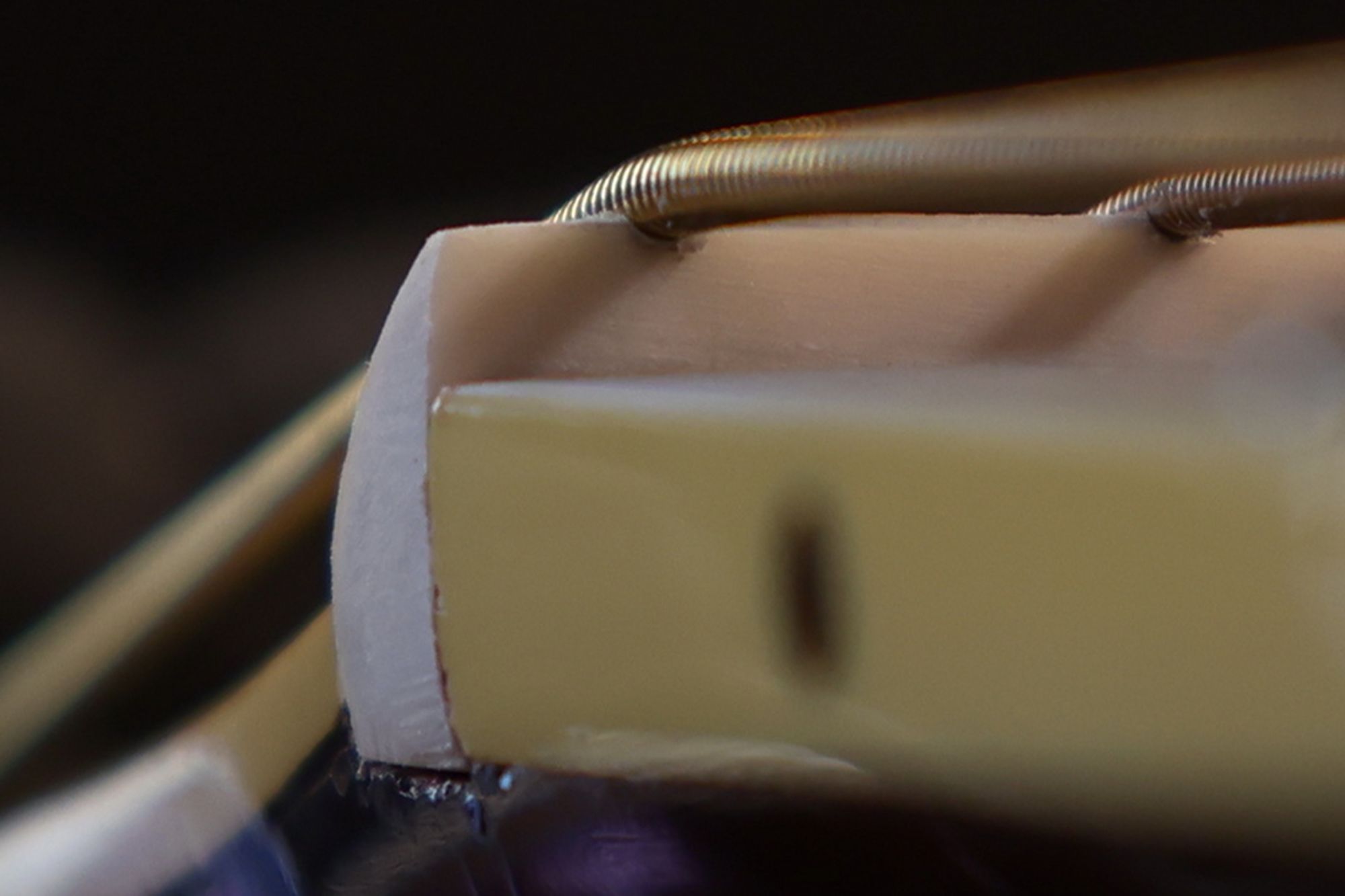 - 5.クリーニング完了したナット溝です。ナットが溝と直接触れることによってギターの音色の改善が期待できます。