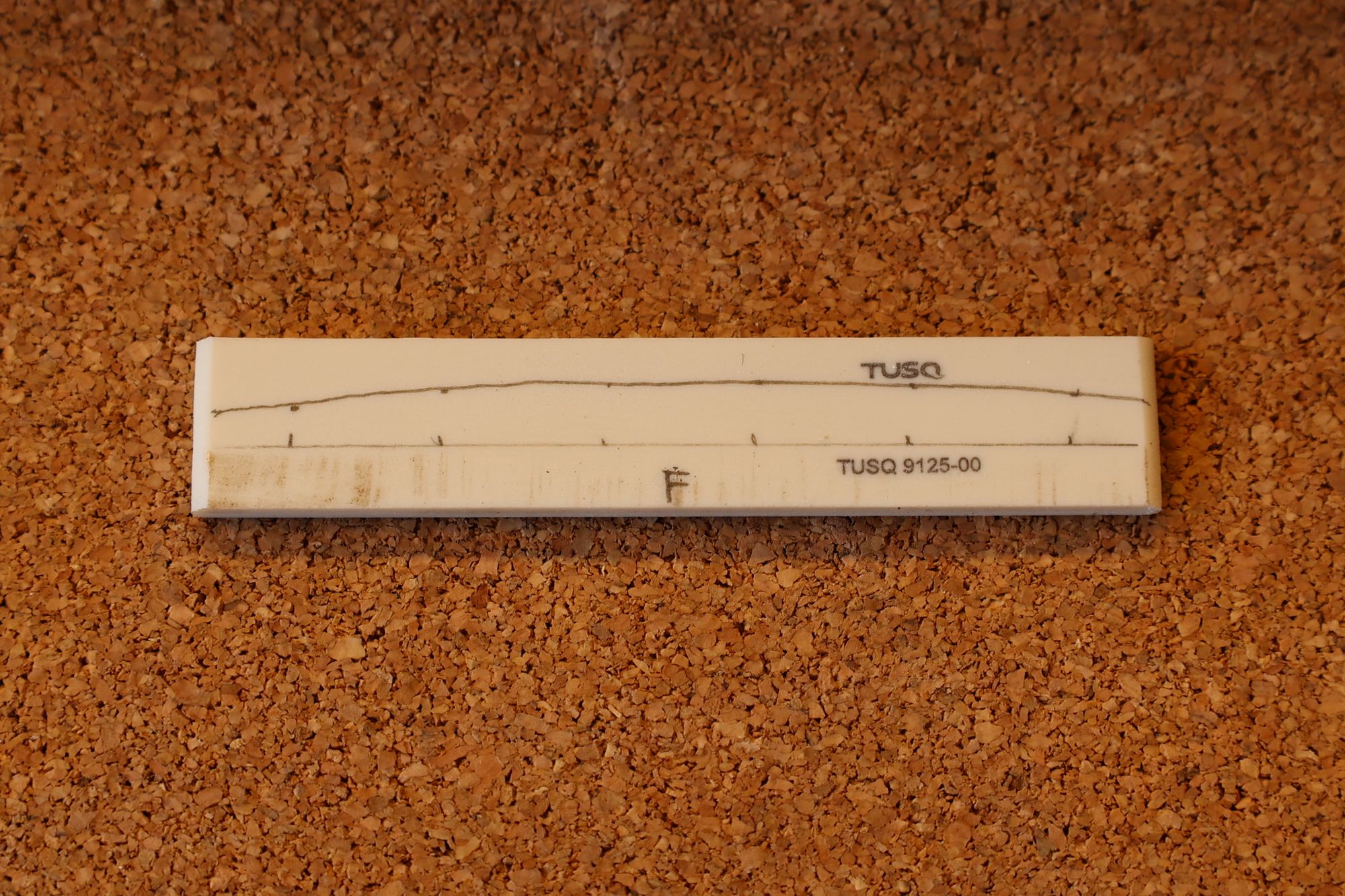 - 25.他の弦も同じ要領で調整しました。弦高調整後のナットです。
