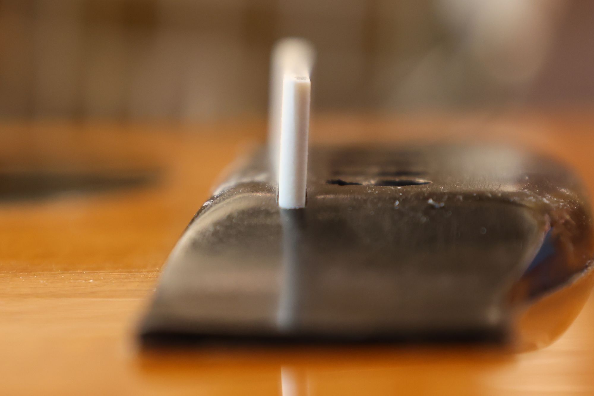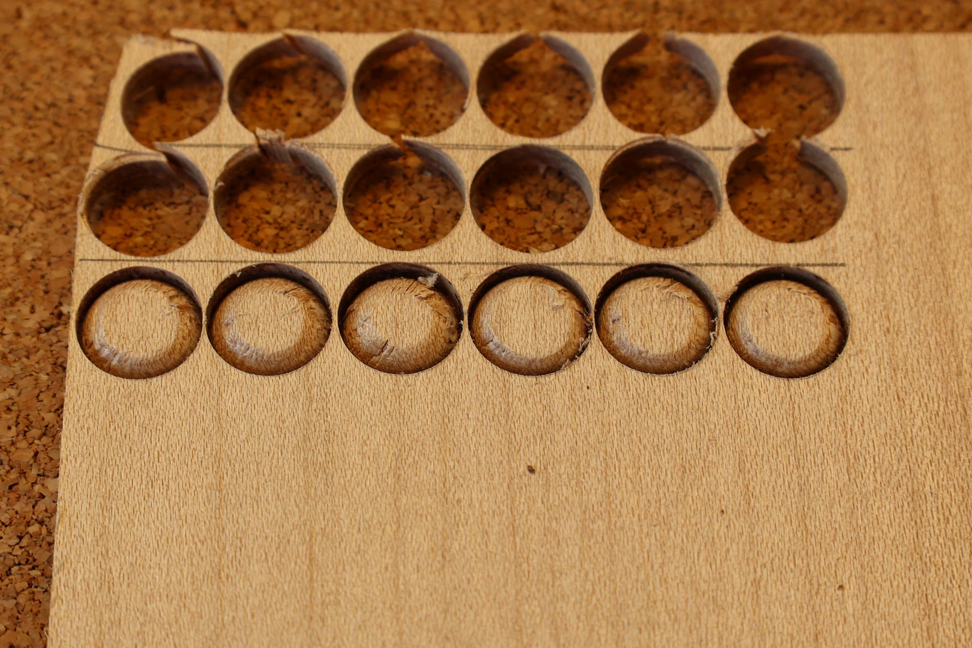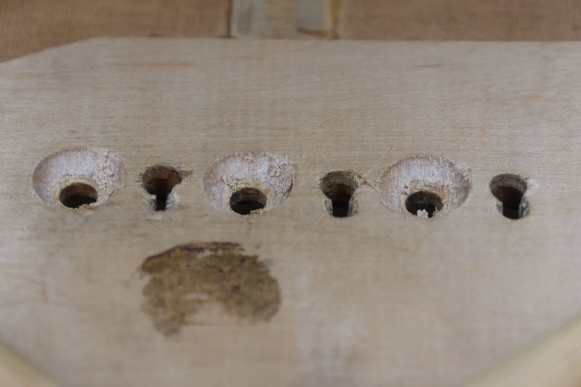 - 5.小穴があいたプラグです。まだ材に固定されています。