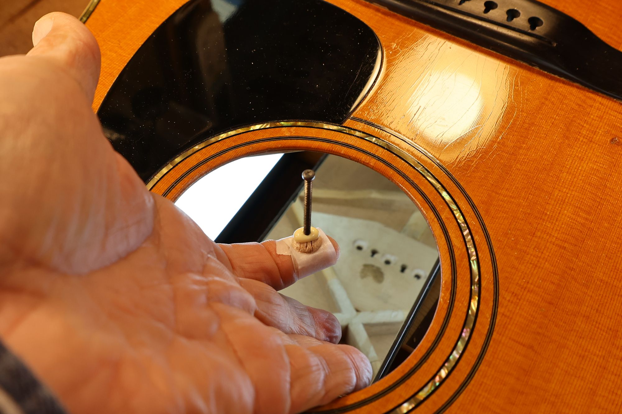 - 15.ジグをサウンドホールから入れていきます。