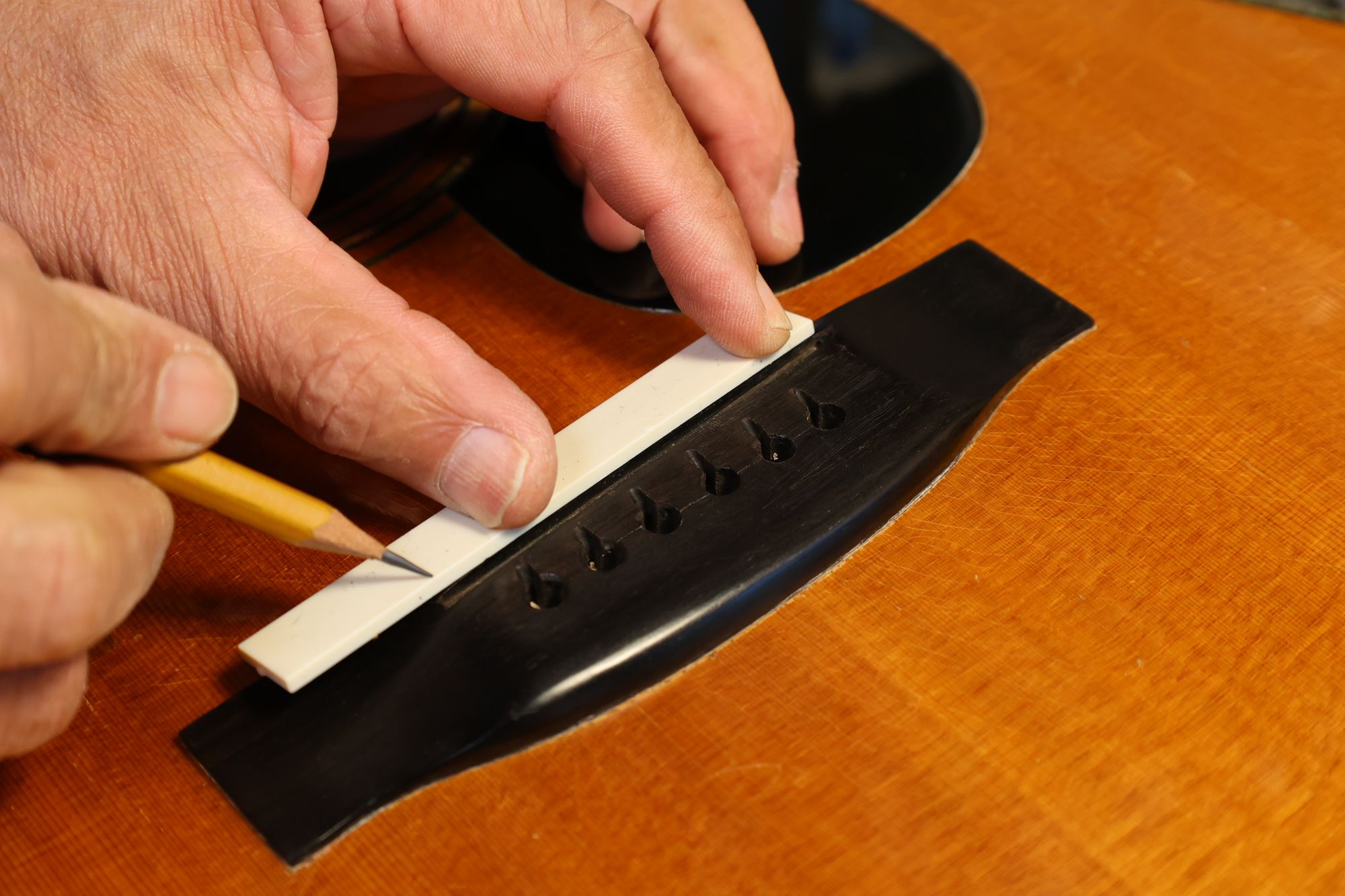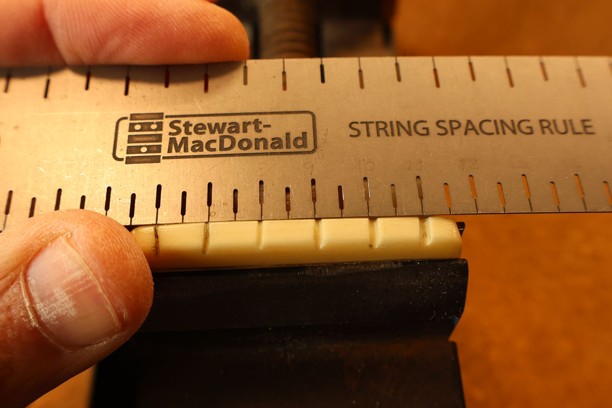 - 18.弦溝位置を新しいナットに書き込みます。