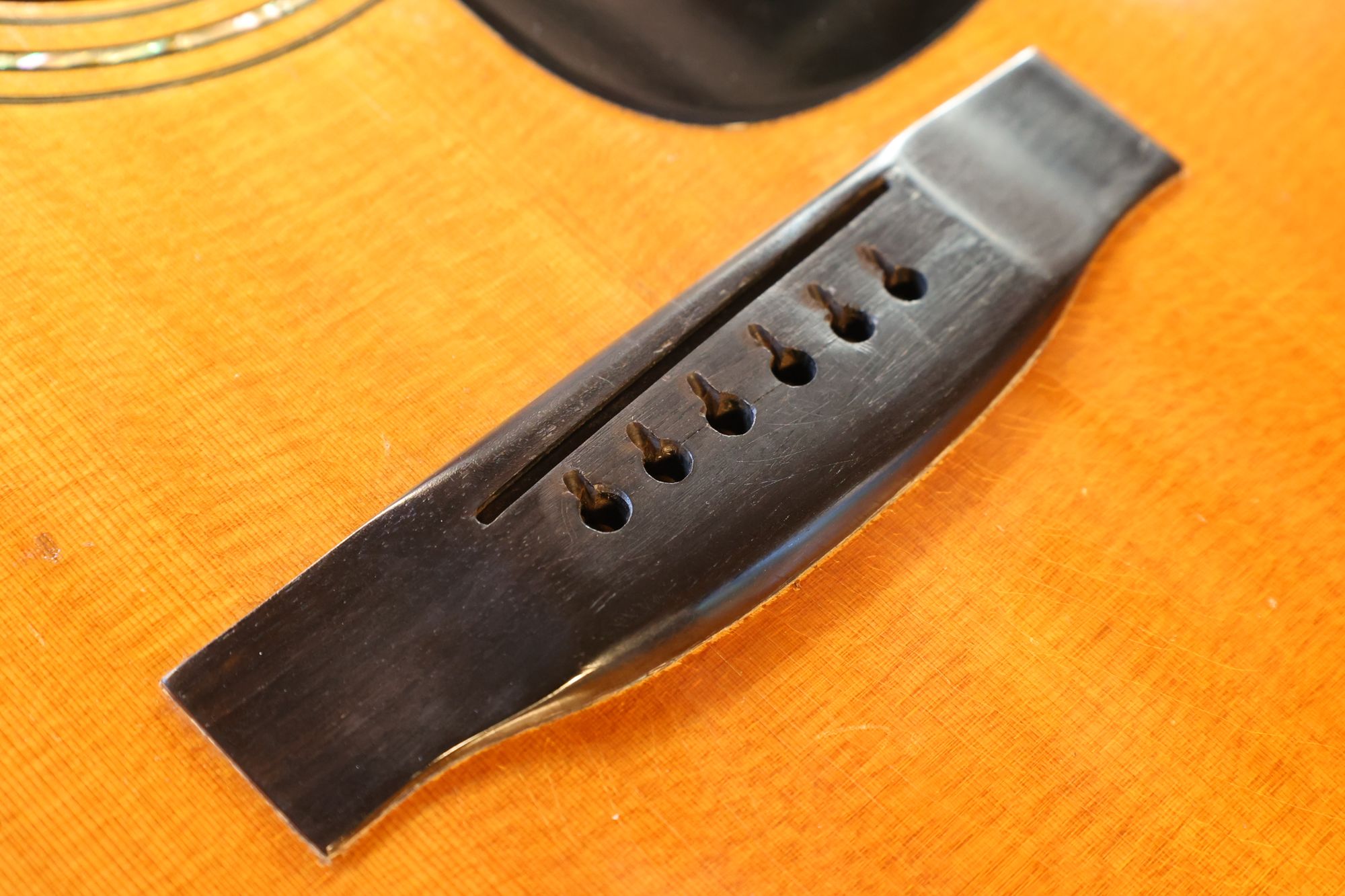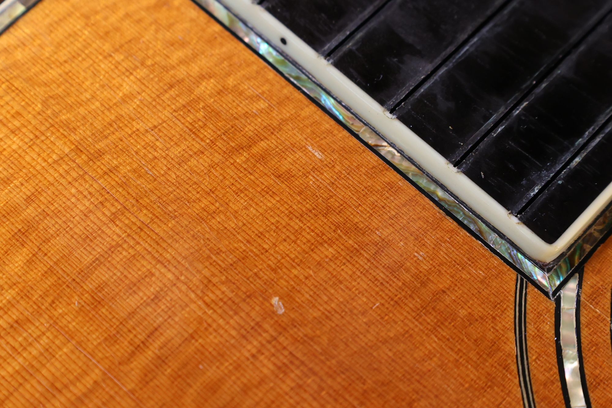 - 2.サウンドホール際にピックのスクラッチ傷跡が見られます。