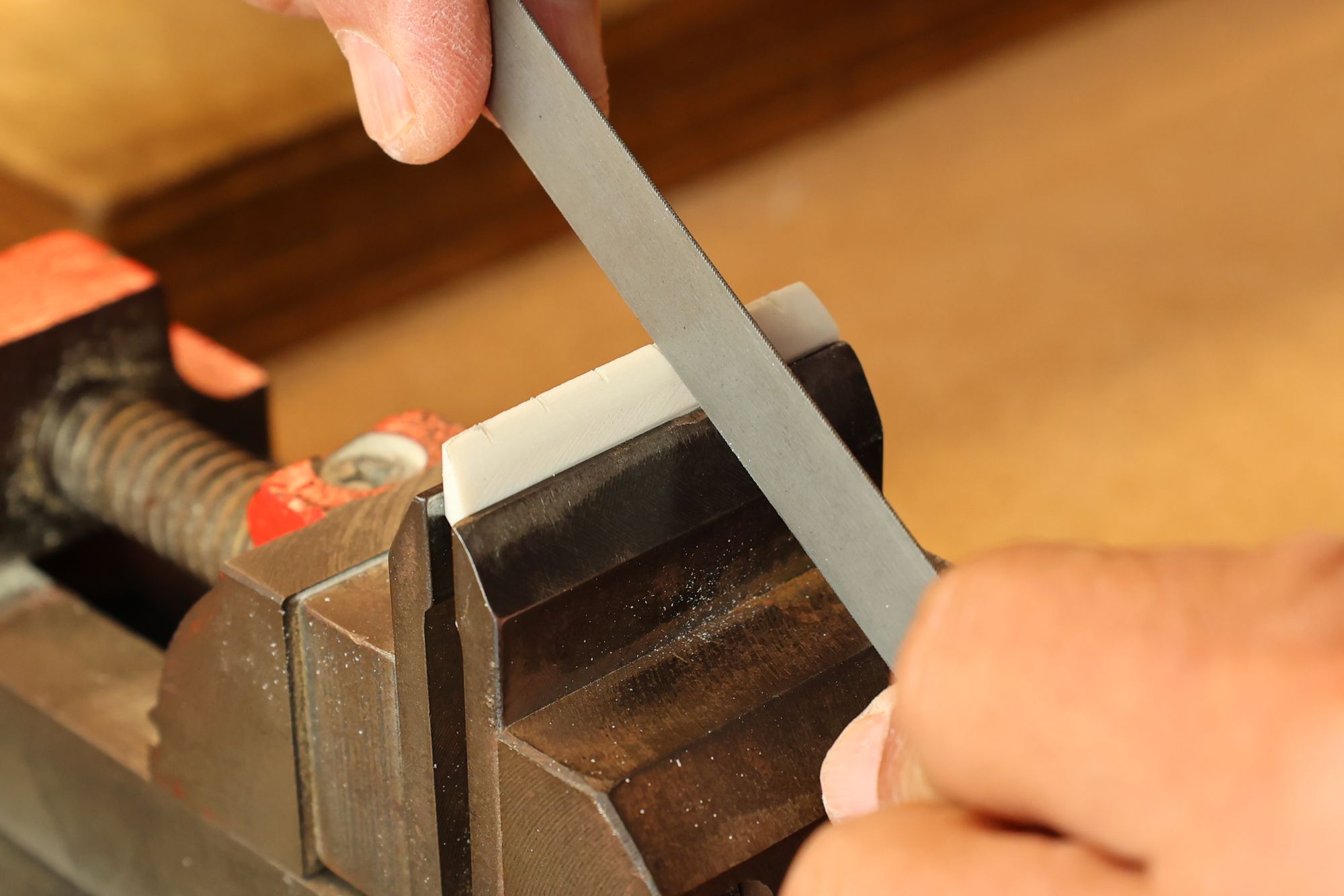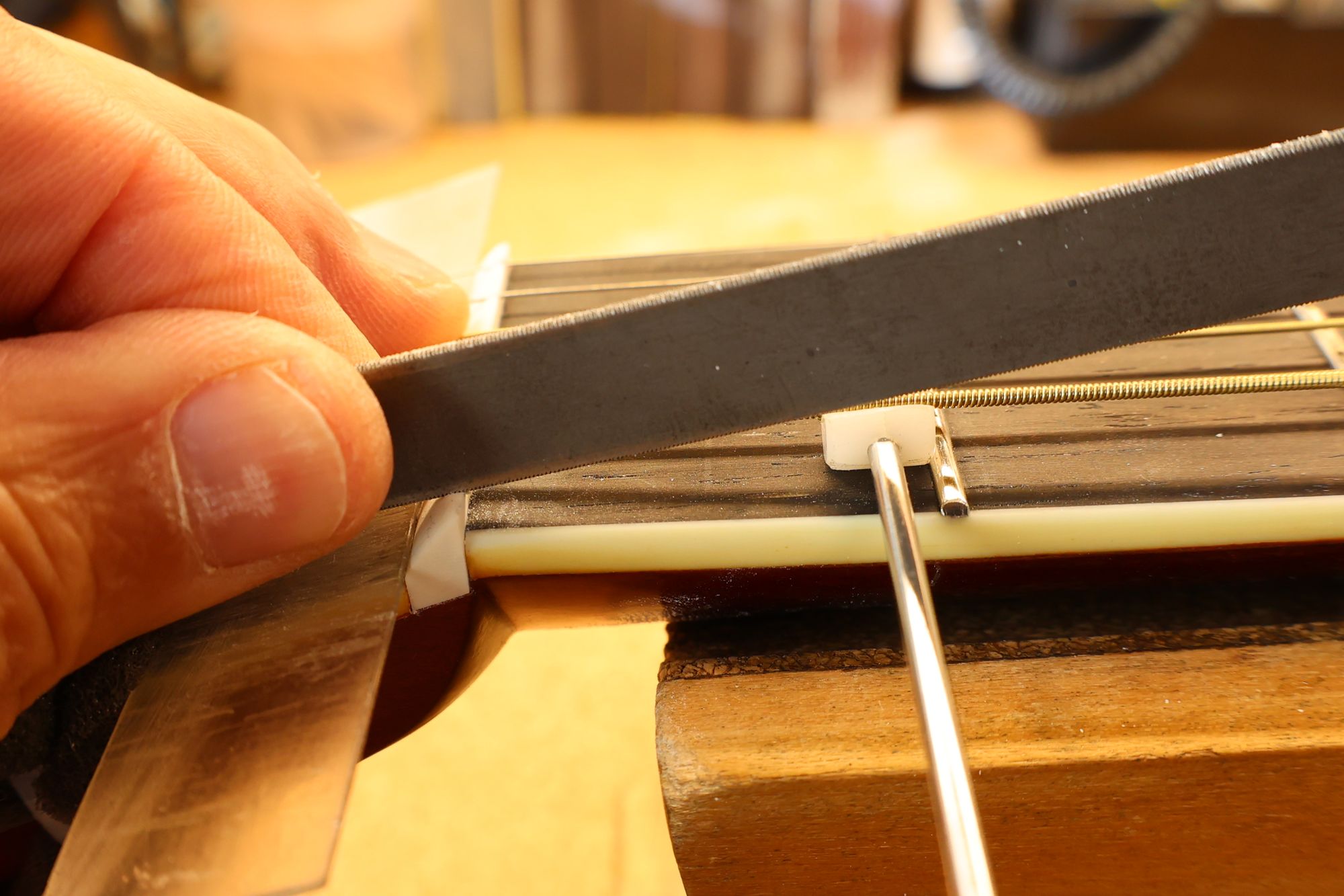 - 19.弦溝を専用のヤスリで彫り込んでいきます。