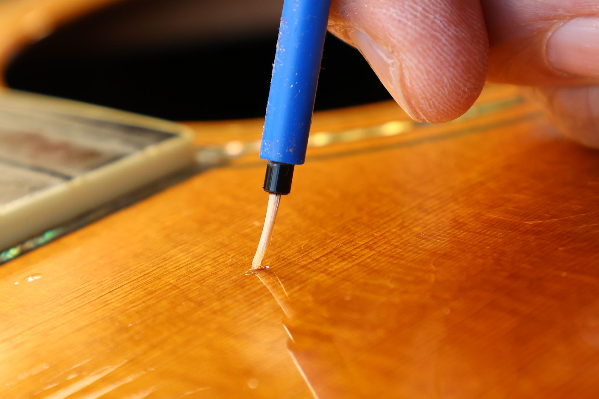 - 8.傷の隙間にラッカーを流し込みます。