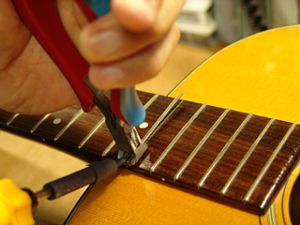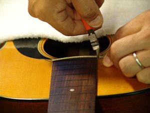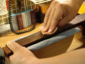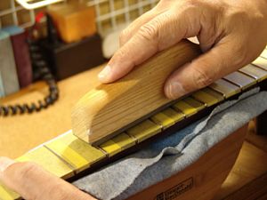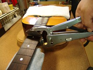 - 29.専用のヤスリを使ってフレット端を整形します。