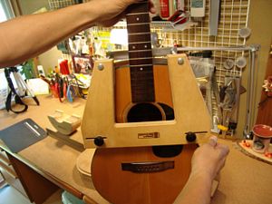 - 9.ネックは蒸気ではずします。まず専用のジグを取り付けます。