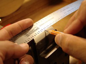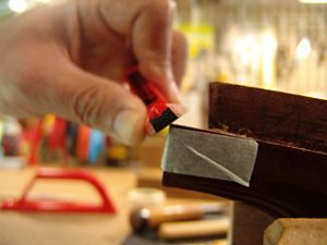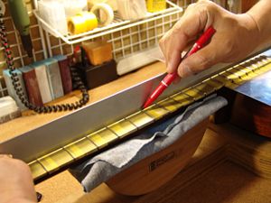 - 13.フレットの高さに合わせてケガキ線を入れます。