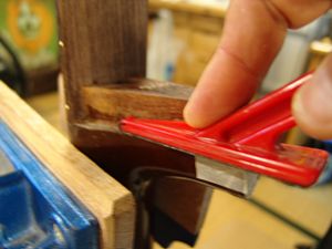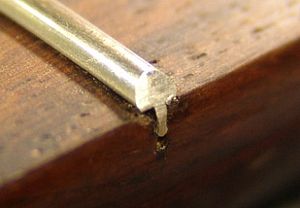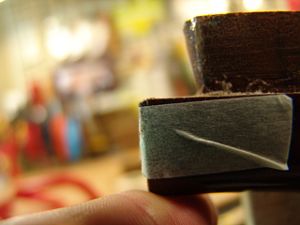 - 2.ローズウッド材からブリッジプレート・リペアのためのプラグを切り出します。