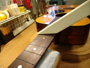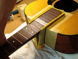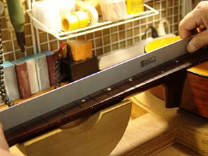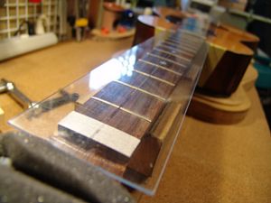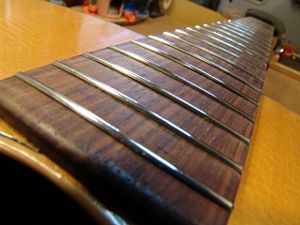 - 12.目視および指で触ってネック、フィンガーボードと段差のないことを確認しておきます。