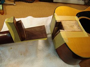 - 32.ボディ側もシムを取り付けてネック接合の準備が完了しました。